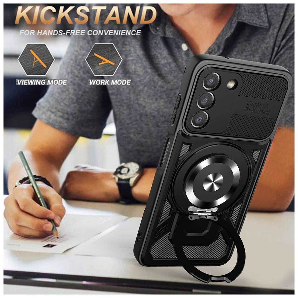 - Multifunkčný kovový krúžok: Slúži ako praktický stojanček pre sledovanie obsahu alebo ako bezpečný úchyt pre pevnejšie držanie telefónu.