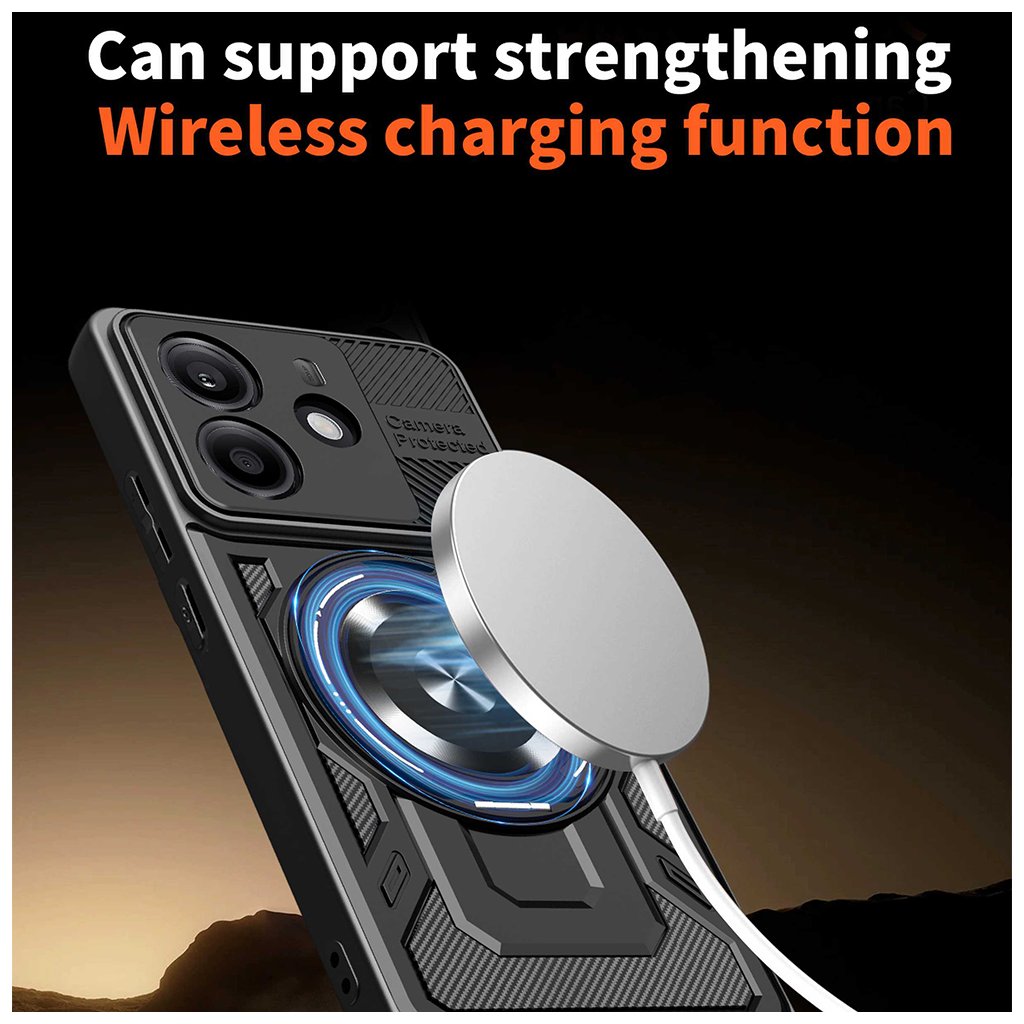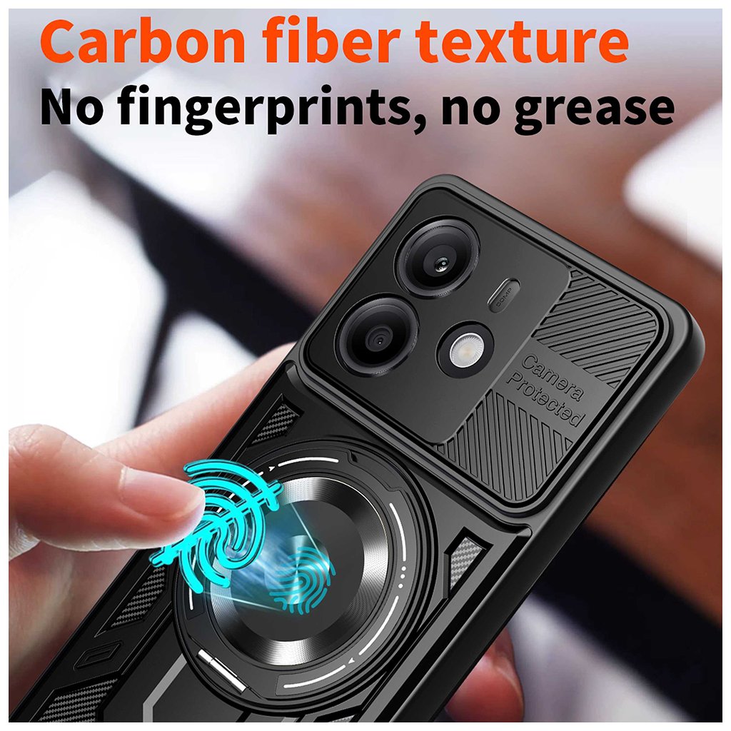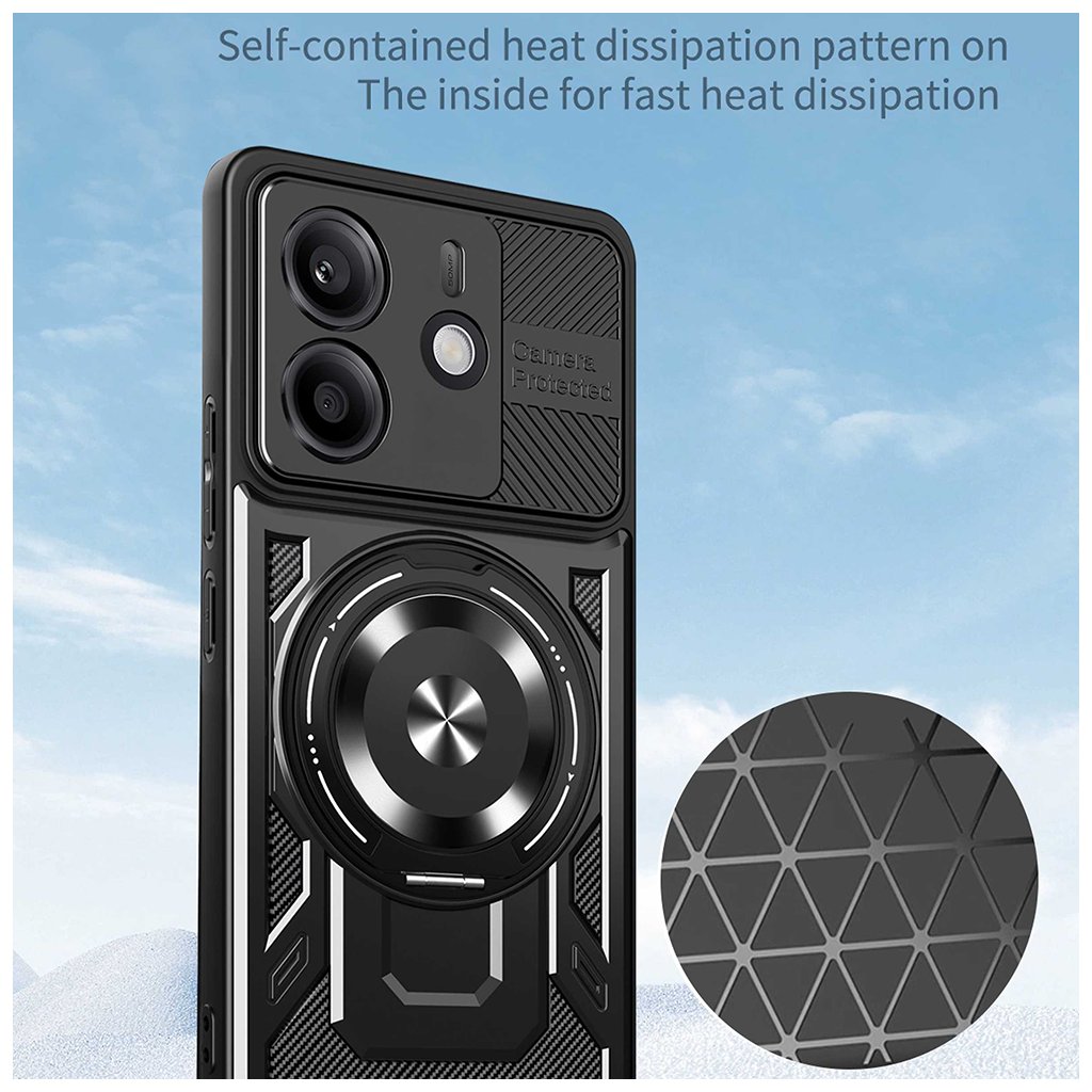 Puzdro Techsuit RuggedCam sa pýši nielen svojou odolnosťou, ale aj premysleným dizajnom. Jeho robustný a taktický vzhľad s výraznými líniami a textúrovanými povrchmi dodáva telefónu moderný a dynamický charakter. Kľúčovým prvkom je integrovaná posuvná krytka fotoaparátu, ktorá efektívne chráni citlivé šošovky pred poškriabaním a nečistotami, keď ich nepoužívate.Na zadnej strane puzdra nájdete multifunkčný kovový krúžok, ktorý slúži ako bezpečný držiak pre pevnejší úchop telefónu a zároveň ako praktický stojan (kickstand) pre pohodlné sledovanie obsahu bez použitia rúk. Tento krúžok je navyše magnetický, čo umožňuje jednoduché prichytenie k magnetickým držiakom a podporuje bezdrôtové nabíjanie.