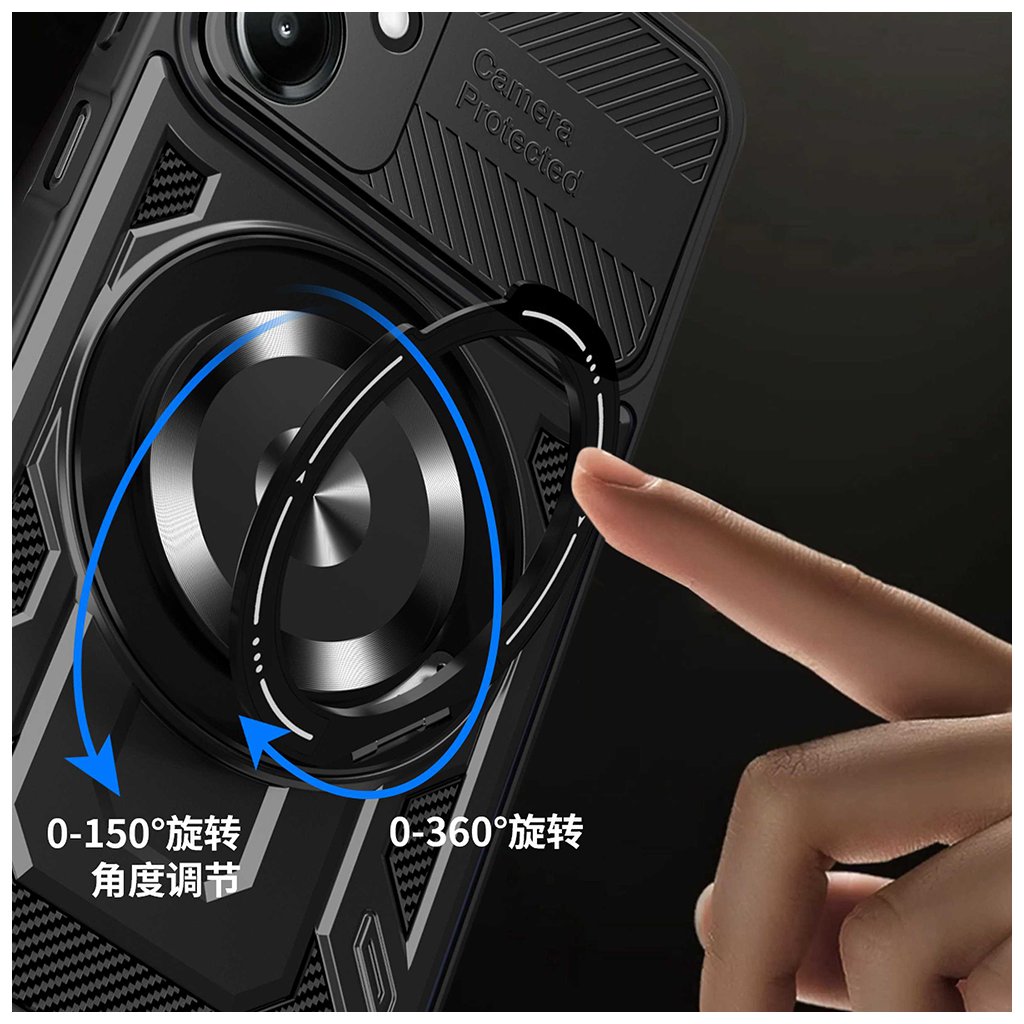 - Na zadnej strane nájdete aj multifunkčný kovový krúžok, ktorý slúži ako praktický stojan na sledovanie obsahu alebo ako bezpečný úchyt pre pohodlné držanie telefónu.