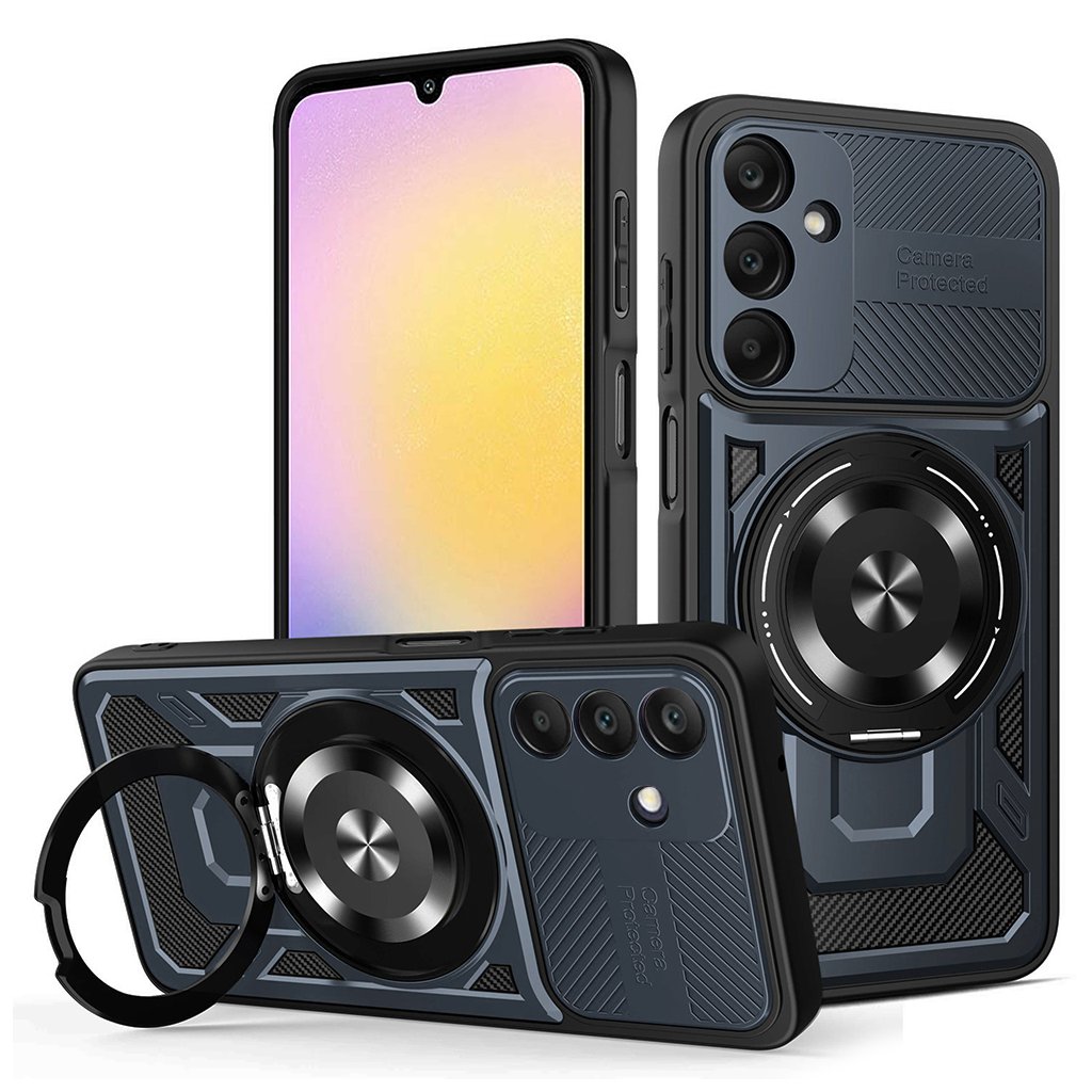 Predstavujeme Techsuit RuggedCam – robustné ochranné puzdro navrhnuté špeciálne pre váš Samsung Galaxy A25 5G. Toto puzdro v elegantnej modrej farbe je stelesnením inteligentného riešenia pre každého, kto hľadá prvotriednu ochranu za rozumnú cenu, bez toho, aby musel obetovať štýl alebo funkčnosť. Dizajn a parametre Puzdro Techsuit RuggedCam sa pýši premysleným a funkčným dizajnom, ktorý okamžite upúta pozornosť. Jeho tmavomodrá farba dodáva telefónu sofistikovaný, avšak odolný vzhľad. Zadná strana puzdra kombinuje niekoľko textúr – od elegantného vzoru imitujúceho karbónové vlákna po protišmykové rebrovanie, ktoré zaisťuje pevný a istý úchop. Zosilnené rohy efektívne absorbujú nárazy a chránia telefón pred poškodením pri pádoch. Kľúčovým prvkom dizajnu je integrovaná posuvná krytka fotoaparátu, ktorá spoľahlivo chráni objektívy pred poškriabaním a nečistotami, keď ich nepoužívate. Ďalšou praktickou funkciou je kovový krúžok na zadnej strane, ktorý slúži ako bezpečný držiak pre lepší úchop telefónu alebo ako praktický stojan pre pohodlné sledovanie obsahu. Tento krúžok je navyše kompatibilný s magnetickými držiakmi, čo zvyšuje jeho univerzálnosť. Značka Techsuit: Kvalita, na ktorú sa môžete spoľahnúť Značka Techsuit si zakladá na poskytovaní inteligentných riešení pre ochranu mobilných zariadení. Na rozdiel od bezejmenných krytov s pochybným pôvodom sú produkty Techsuit vyrobené zo starostlivo vybraných a zdravotne nezávadných materiálov, ktoré spĺňajú európske štandardy kvality. To zaručuje nielen dlhú životnosť a odolnosť proti každodennému opotrebovaniu, ale aj bezpečie pre vás a vaše okolie.- Presné spracovanie: Každý kryt Techsuit je navrhnutý s maximálnym dôrazom na detail. Padnúce výrezy pre konektory, mikrofóny, reproduktory aj fotoaparáty zaisťujú, že funkčnosť vášho telefónu nebude nikdy obmedzená. Tlačidlá majú istý stisk a prístup k nabíjaciemu portu je vždy bezproblémový.