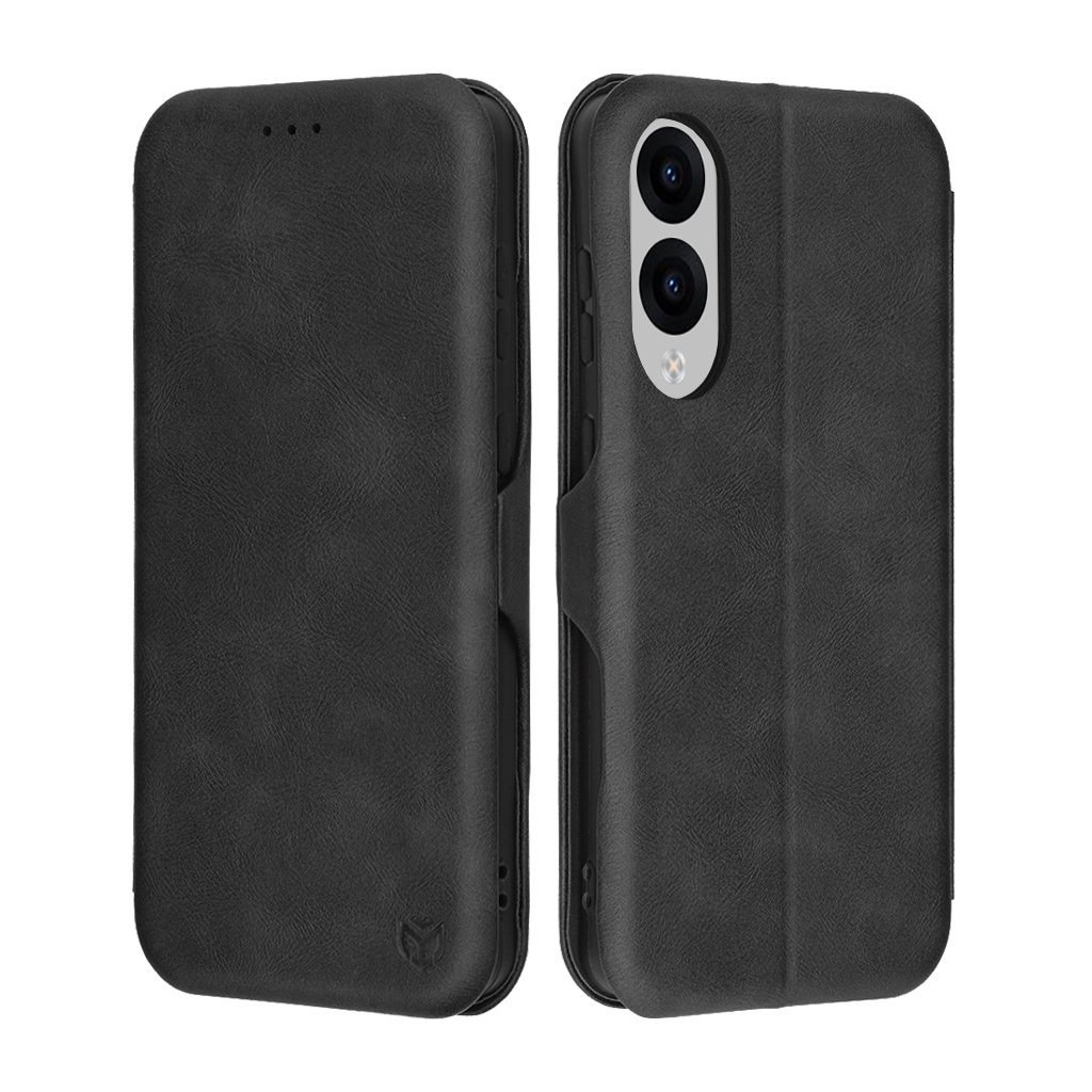 Puzdro Techsuit Safe Wallet Plus v elegantnej čiernej farbe sa pýši sofistikovaným dizajnom, ktorý podčiarkuje moderný vzhľad vášho telefónu. Vonkajšia strana je vyrobená z kvalitného materiálu s jemnou textúrou, pripomínajúcou kožu, čo zaisťuje príjemný pocit na dotyk a zároveň dodáva puzdru luxusný vzhľad. Diskrétne logo Techsuit je decentne umiestnené v pravom dolnom rohu prednej strany.