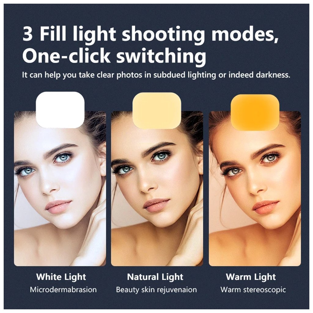 - Tri režimy osvetlenia: Vyberte si z bieleho, prirodzeného alebo teplého svetla pre dosiahnutie požadovanej atmosféry a kvality snímok.