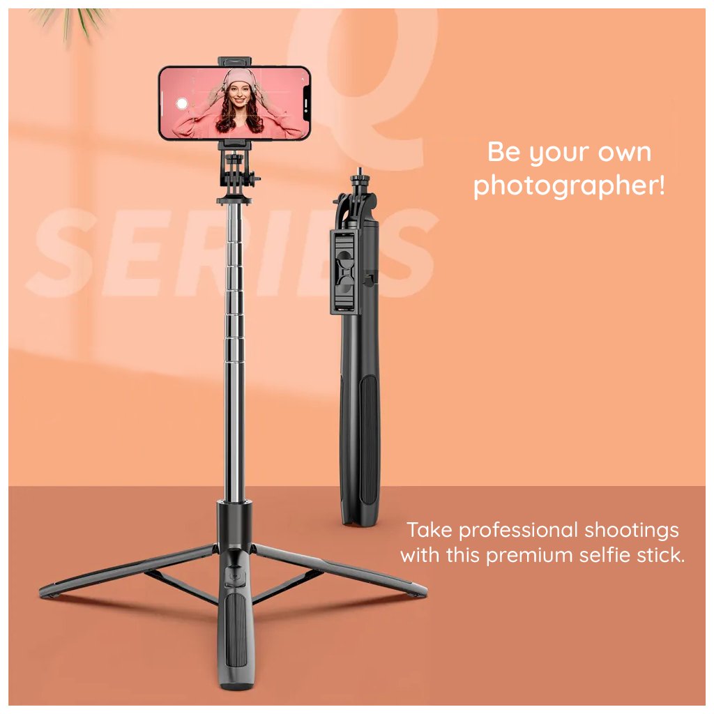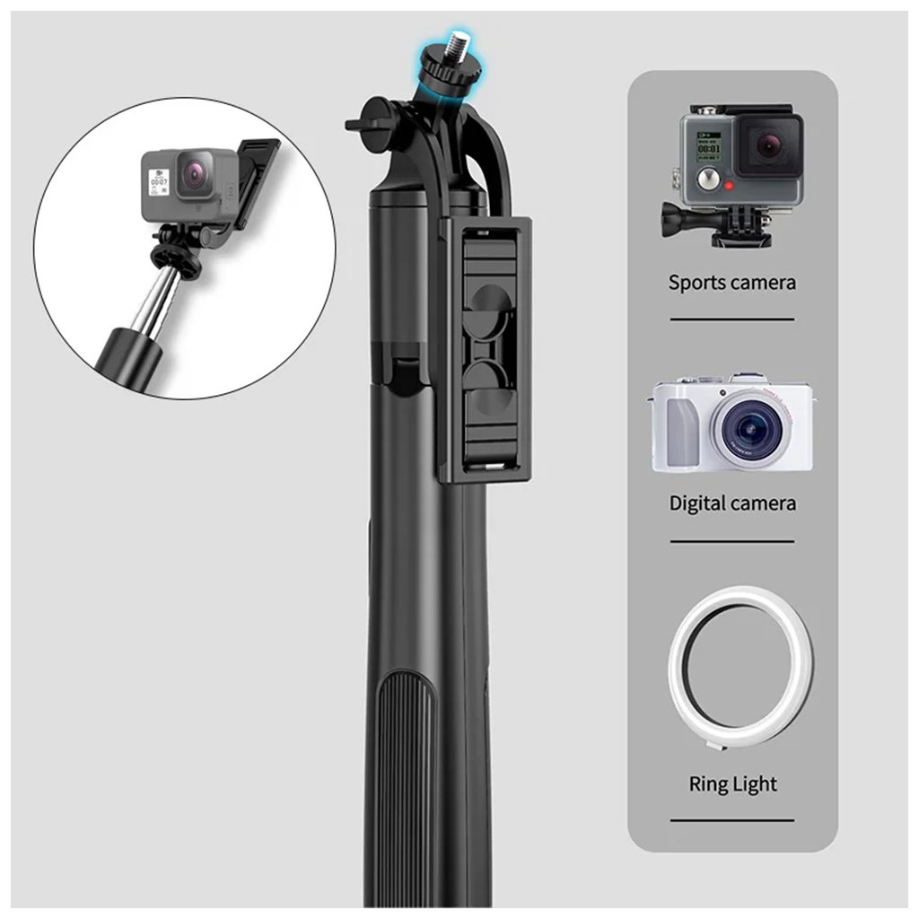 Techsuit Selfie tyč Q05 Stabilný statív Bluetooth 360 Čierna 158cm