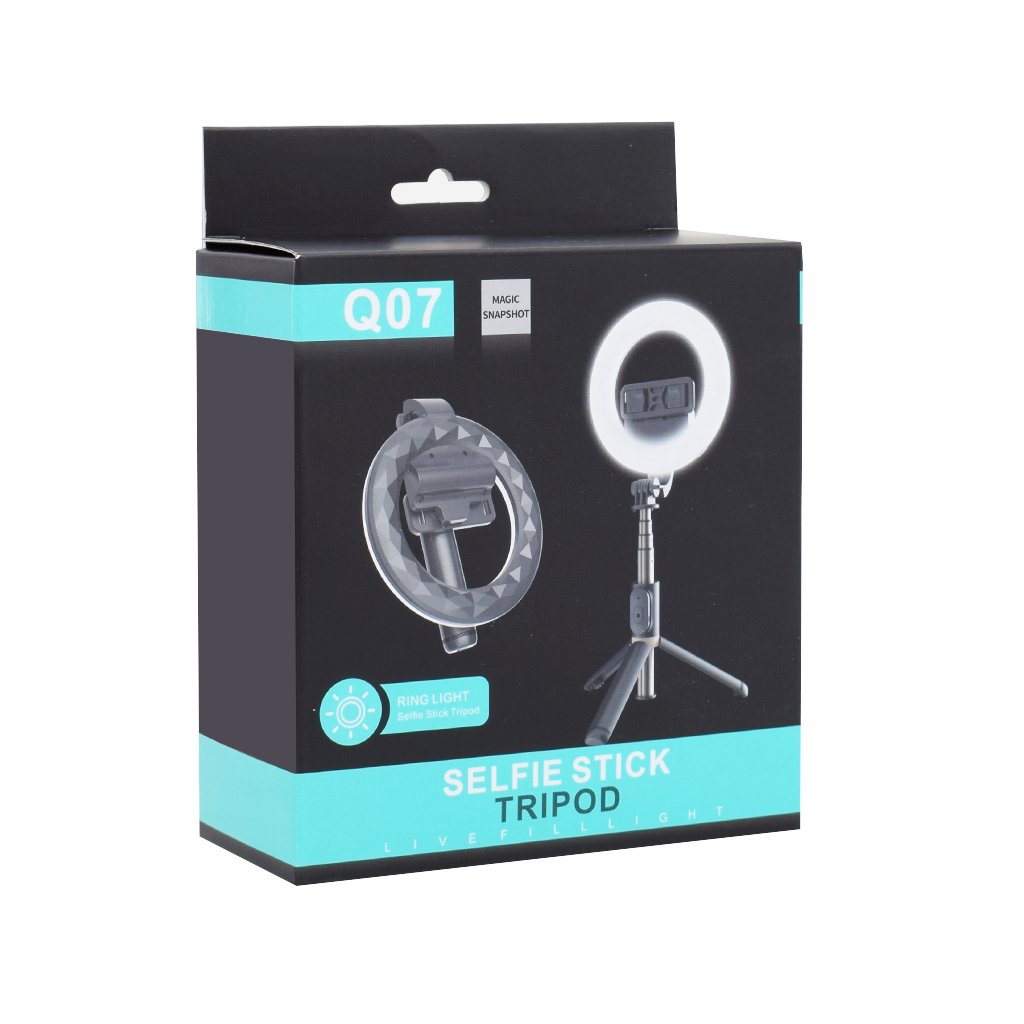 Techsuit Selfie tyč Q07 statív kruhové svetlo Bluetooth 80cm Čierna
