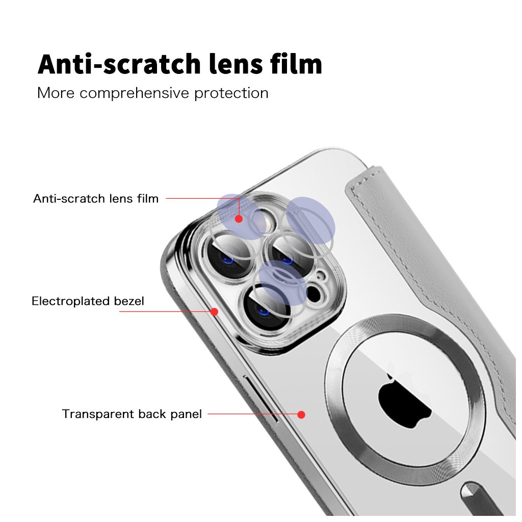 Puzdro Techsuit SmartMag sa pýši sofistikovaným knižkovým dizajnom v elegantnej šedej farbe, ktorý dodá vášmu telefónu profesionálny vzhľad. Váš iPhone je bezpečne usadený v priehľadnej zadnej časti s galvanizovaným rámčekom, ktorý necháva vyniknúť originálny dizajn telefónu. Pre maximálnu ochranu fotoaparátu je puzdro vybavené fóliou proti poškriabaniu objektívu. Na zadnej strane nájdete integrovaný MagSafe kompatibilný krúžok, ktorý zaisťuje pevné uchytenie a bezproblémové bezdrôtové nabíjanie či použitie MagSafe príslušenstva.