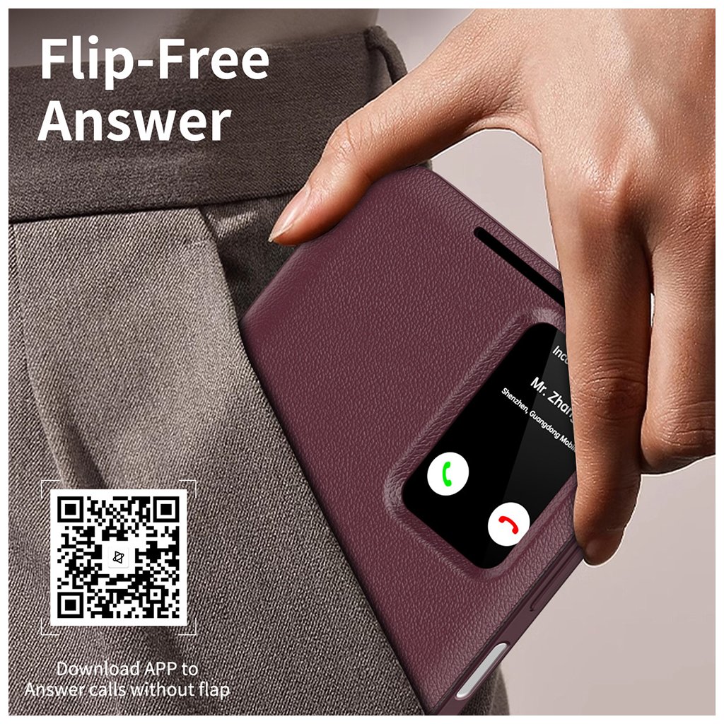 Puzdro typu "flip" je vyrobené z materiálu s jemnou, textúrovanou povrchovou úpravou, ktorá pripomína kožu, čo dodáva vášmu zariadeniu luxusný vzhľad a príjemný pocit na dotyk. Jeho hlavnou prednosťou je priehľadné okienko na prednej strane, ktoré umožňuje rýchly prístup k dôležitým informáciám bez nutnosti otvárania puzdra.