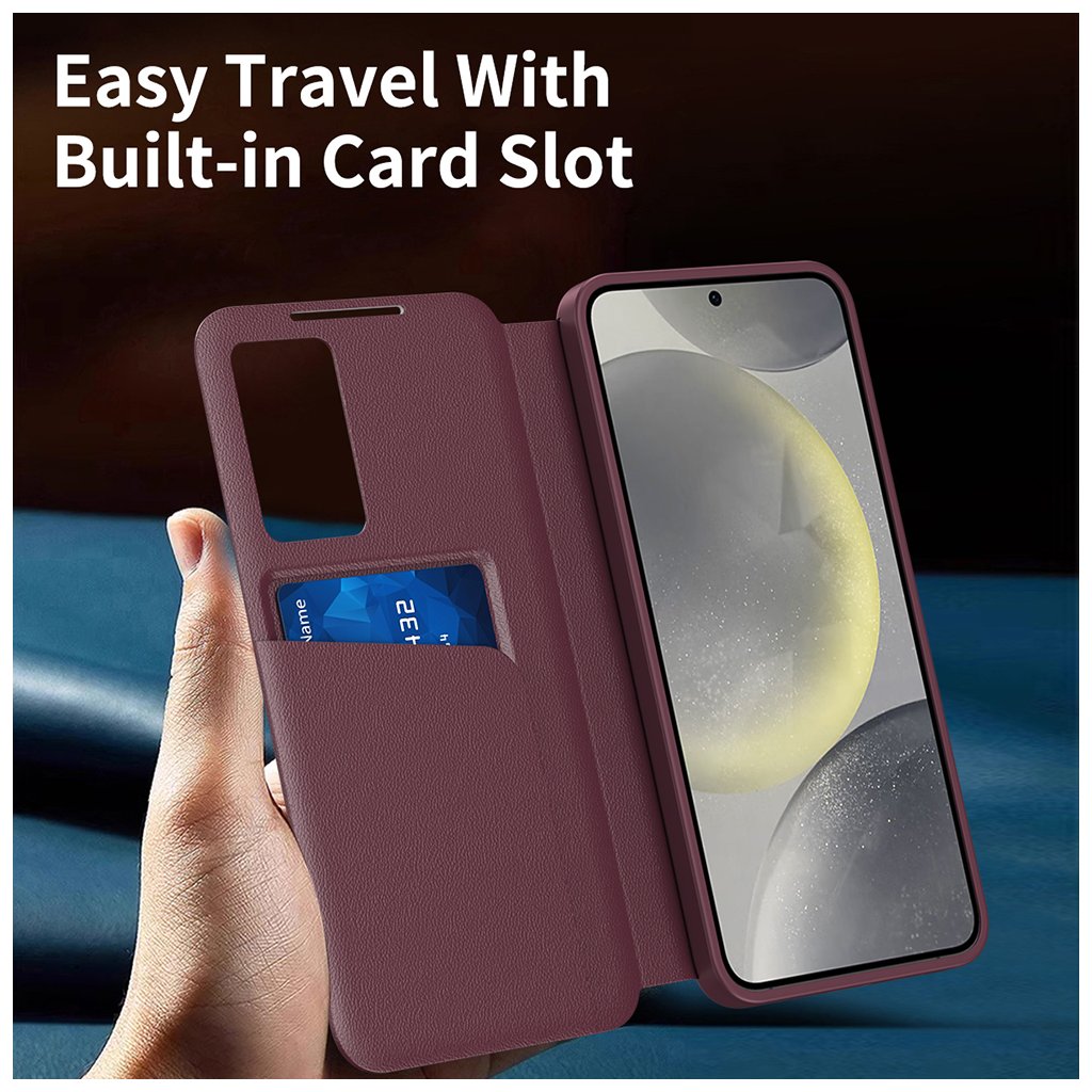 Predstavujeme Techsuit SmartView Series, elegantné a funkčné puzdro v sýto červenej farbe, ktoré dokonale ochráni váš telefón a zároveň ponúkne praktické funkcie.