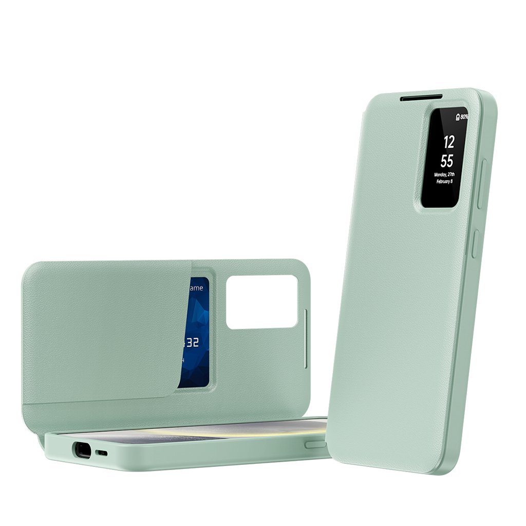 Puzdro Techsuit SmartView Series sa pýši minimalistickým a zároveň elegantným dizajnom. Jeho povrch je vyhotovený v príjemnej, jemne textúrovanej zelenej farbe, ktorá dodáva telefónu luxusný vzhľad a príjemný pocit na dotyk. Kľúčovým prvkom je inteligentné priehľadné okienko na prednej strane, ktoré vám umožní okamžite skontrolovať čas, dátum a stav batérie, bez toho, aby ste museli puzdro otvárať.