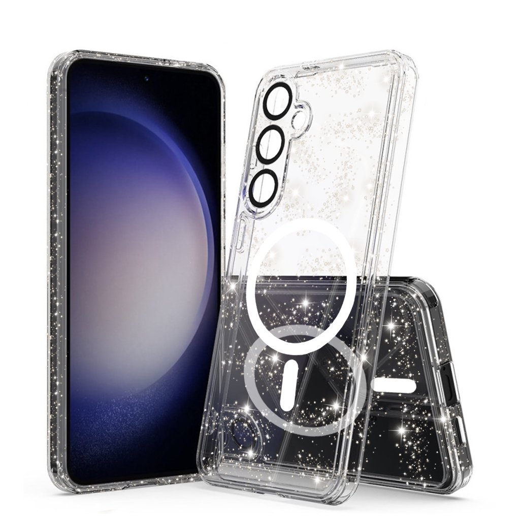 Techsuit SparkleSkin MagSafe Series Samsung Galaxy S24 Clear Techsuit SparkleSkin MagSafe Series - Samsung Galaxy S24 - Clear Doprajte svojmu Samsungu Galaxy S24 ochranu, ktorá je rovnako štýlová ako funkčná. Puzdro Techsuit SparkleSkin MagSafe Series v priehľadnom prevedení s trblietavými detailmi je ideálnou voľbou pre tých, ktorí chcú zachovať originálny dizajn telefónu a zároveň mu dodať iskru a spoľahlivú ochranu. Dizajn, ktorý zaujme Toto elegantné puzdro sa pýši krištáľovo čistým dizajnom, ktorý nechá vyniknúť krásu vášho Samsungu Galaxy S24. Je obohatené o jemné, ale výrazné trblietavé čiastočky, ktoré sú rovnomerne rozprestreté po celom povrchu puzdra aj po jeho bokoch, a dodávajú mu tak oslnivý "SparkleSkin" efekt.- Na zadnej strane je integrovaný biely MagSafe krúžok, ktorý zaisťuje perfektnú kompatibilitu s MagSafe príslušenstvom a bezdrôtovým nabíjaním.