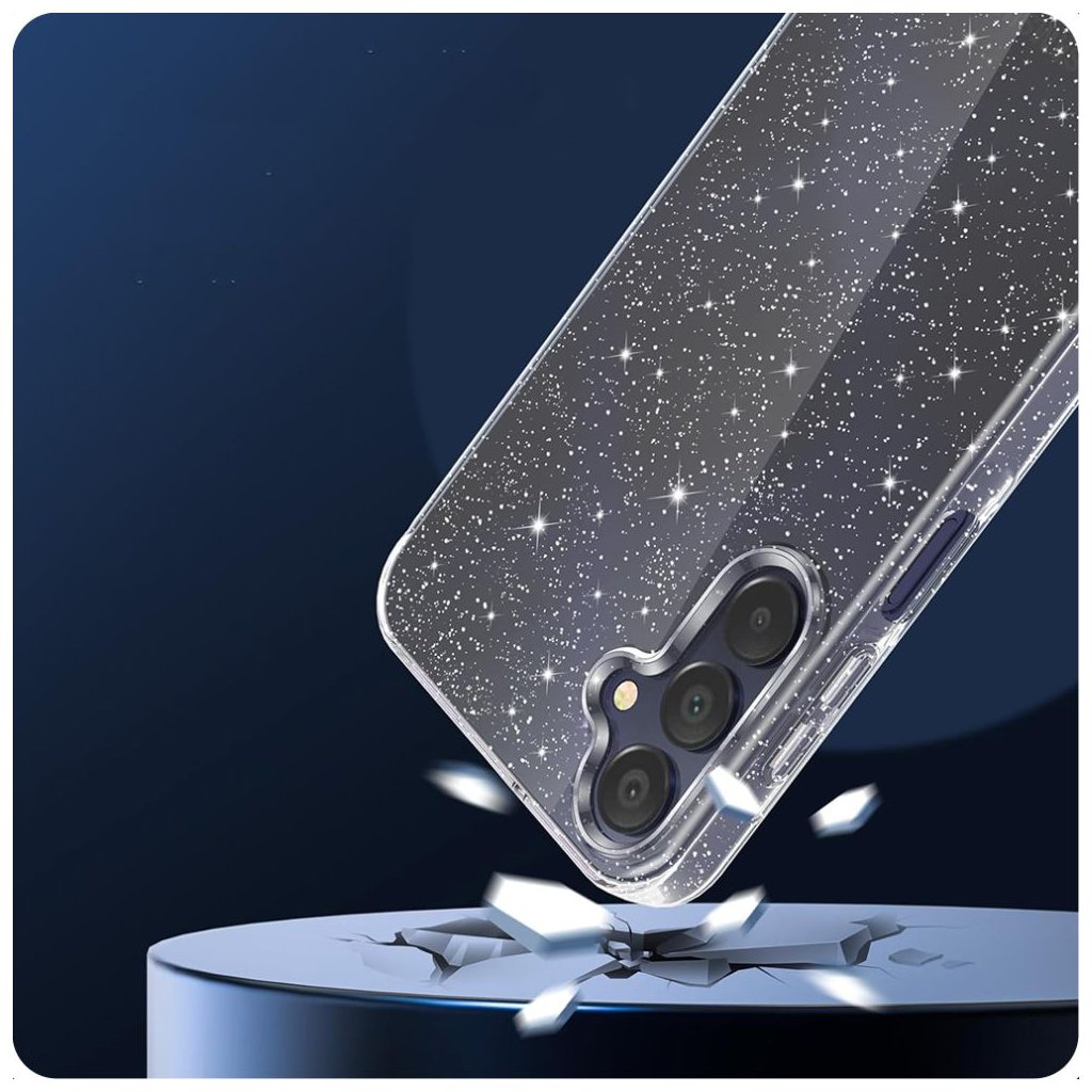- Trblietavý efekt: Jemné, trblietavé čiastočky rozptýlené po zadnej strane dodávajú puzdru oslnivý a dynamický vzhľad. Tieto trblietky vytvárajú efekt iskrivých hviezd, ktoré sa lesknú pri každom pohybe a premenia váš telefón v módny doplnok.