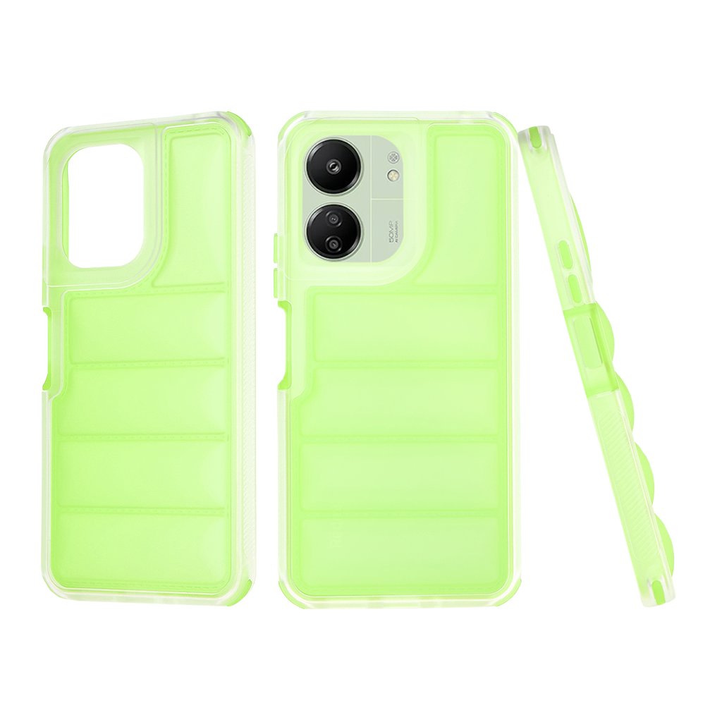 Puzdro Techsuit Wave Shield sa pýši unikátnym vlnovým dizajnom na zadnej strane, ktorý pripomína prešívanú bundu a dodáva mu moderný a dynamický vzhľad. Jeho priesvitná neónovo zelená farba nielen upúta pozornosť, ale aj podčiarkne originalitu vášho telefónu.- **Kompatibilita:** Xiaomi Redmi 13C 4G / Redmi 13C 5G / Poco C65