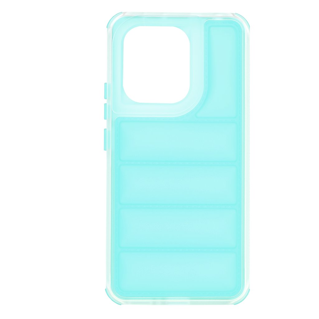 Puzdro Techsuit Wave Shield sa pýši unikátnym dizajnom, ktorý pripomína jemné vlny alebo prešívanú bundu. Jeho zadná strana je tvorená horizontálnymi, mierne vystúpenými segmentmi, ktoré nielenže dodávajú puzdru moderný a hravý vzhľad, ale taktiež zlepšujú úchop a minimalizujú riziko vykĺznutia z ruky. Polopriehľadný tyrkysový odtieň podčiarkuje originalitu a umožňuje presvitať pôvodnej farbe telefónu, zatiaľ čo precízne výrezy pre fotoaparát a tlačidlá zaisťujú plnú funkčnosť bez kompromisov. Bočné strany sú hladké a ergonomicky tvarované pre pohodlné držanie.