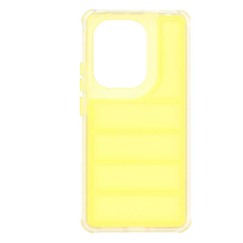 Puzdro Techsuit Wave Shield v atraktívnej žltej farbe sa vyznačuje unikátnym dizajnom, ktorý pripomína prešívanú bundu alebo vlnu. Zadná strana je zdobená horizontálnymi vystúpenými líniami, ktoré nielenže dodávajú puzdru osobitý vzhľad, ale tiež: