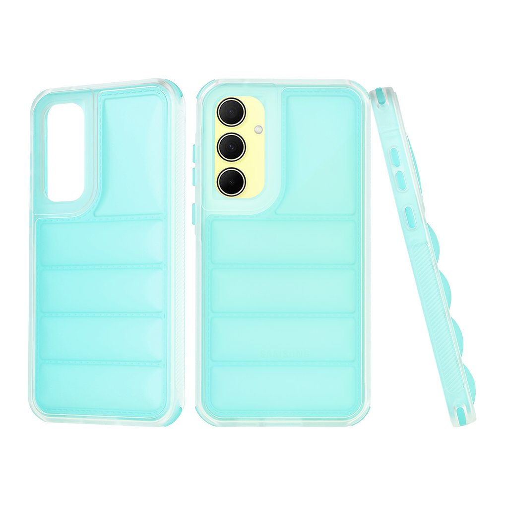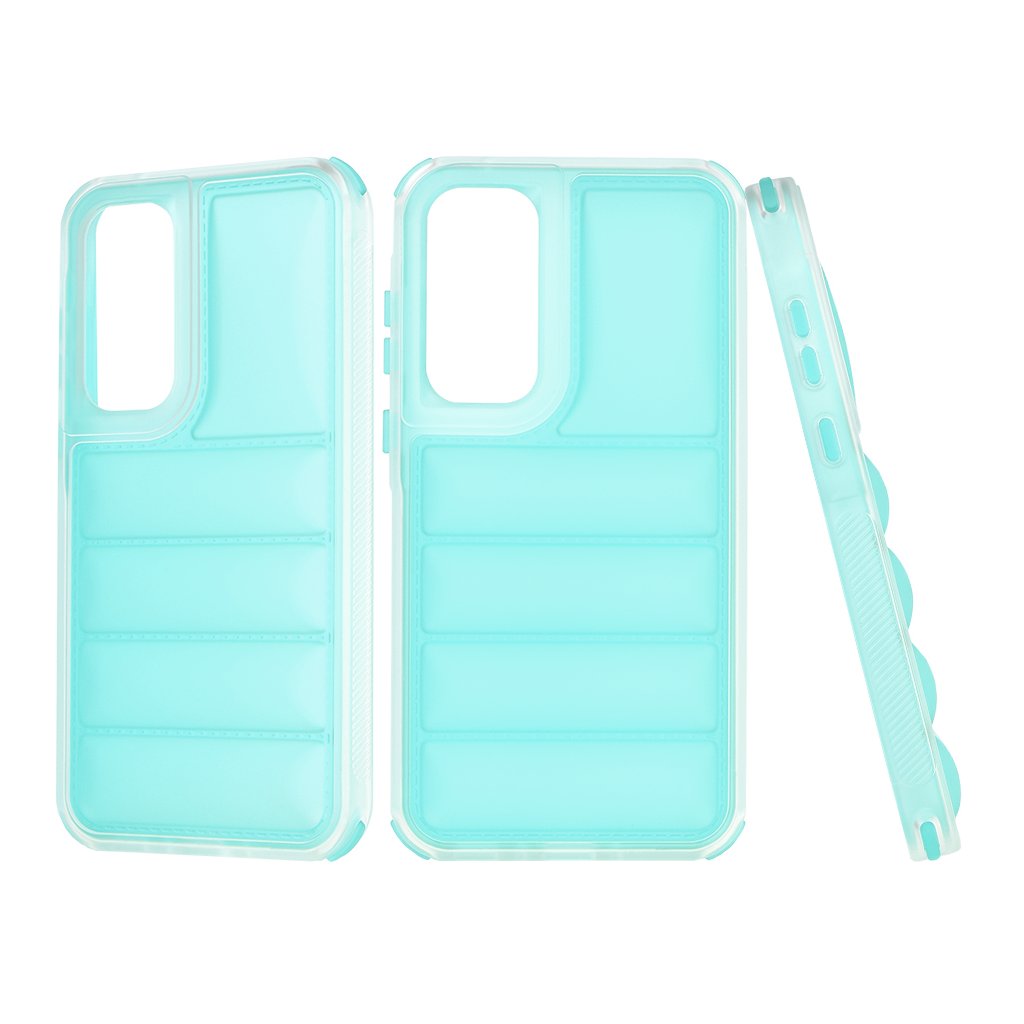 Puzdro Techsuit Wave Shield v elegantnej tyrkysovej farbe je navrhnuté tak, aby dokonale splynulo s vaším telefónom Samsung Galaxy A35 5G. Jeho unikátny dizajn sa vyznačuje polopriehľadným prevedením a na zadnej strane zaujme moderným vlnkovým (puffer) vzorom s horizontálnymi vystúpenými líniami, ktoré nielen skvele vyzerajú, ale tiež poskytujú zvýšenú ochranu proti nárazom a zlepšujú úchop. Okraje puzdra sú zosilnené a transparentné, čo dodáva celku ľahkosť a zároveň chráni najzraniteľnejšie časti telefónu. Materiál, pravdepodobne kvalitné TPU, zaisťuje flexibilitu a odolnosť proti poškriabaniu a pádom.