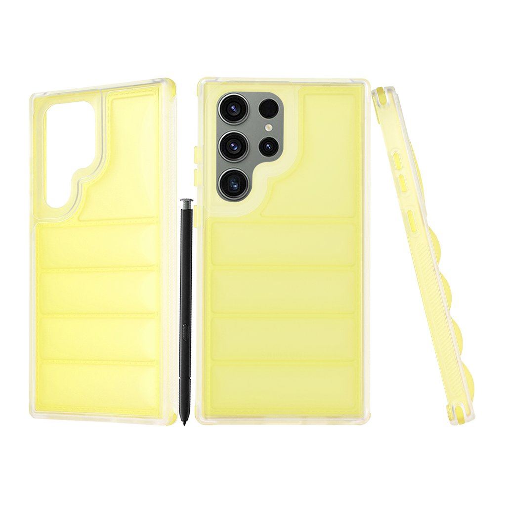 Puzdro Techsuit Wave Shield sa pýši moderným a hravým dizajnom, ktorý pripomína prešívanú bundu. Jeho zadná strana je opatrená plastickým vlnitým vzorom, ktorý nielen skvele vyzerá, ale taktiež prispieva k lepšiemu úchopu a potenciálne aj k rozloženiu nárazovej energie. Priesvitná žltá farba dodáva puzdru svieži a energický vzhľad, zatiaľ čo precízne výrezy zaisťujú bezproblémový prístup ku všetkým konektorom, mikrofónom, reproduktorom a fotoaparátom. Tlačidlá majú istý stisk a sú ľahko ovládateľné, čo zaručuje plnú funkčnosť vášho zariadenia bez kompromisov.