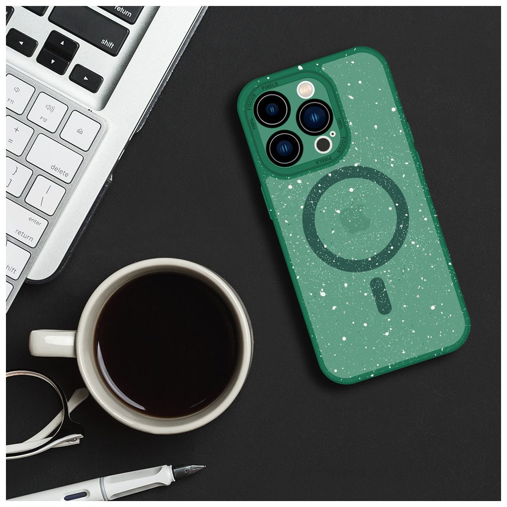 Tel Protect Magnetické matné puzdro proti striekajúcej vode - je polopriehľadné matné puzdro zdobené jedinečným vzorom. Puzdro chráni zadnú časť a boky smartfónu. Vďaka magnetom zabudovaným v puzdre je kompatibilné s príslušenstvom Apple MagSafe. Hybridná konštrukcia (pružné strany z TPU + tvrdá zadná strana z PVC) Ochrana proti poškriabaniu a pádu Vybavený magnetickým krúžkom kompatibilným s príslušenstvom MagSafe Tento dizajn dodáva jedinečný a originálny vzhľad Úplná ochrana objektívu fotoaparátu - zabudovaný chránič objektívu Držiak na šnúrku Zosilnené rohy na absorbovanie sily nárazu Zvýšené okraje poskytujú dodatočnú ochranu obrazovky Potrebné výrezy pre konektory a porty Integrované tlačidlá zabraňujú prenikaniu prachu a nečistôt pod puzdro Nabíjanie telefónu bez vybratia z puzdraDodatočné parametre