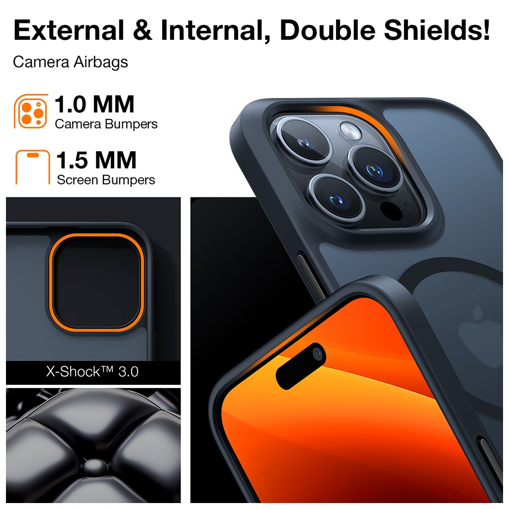 - Pokročilá technológia X-SHOCK™ 3.0 s vnútornými vzduchovými vankúšmi garantuje ochranu na vojenskej úrovni proti pádom a otrasom.