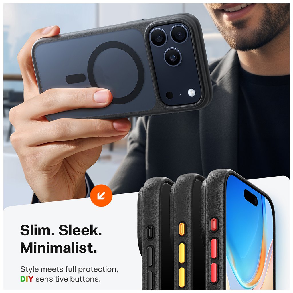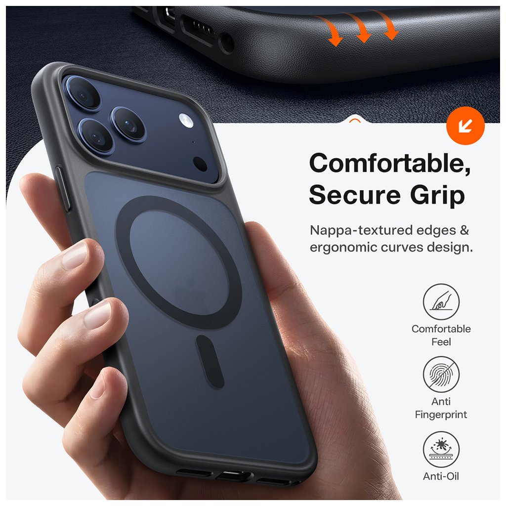Puzdro Torras Guardian Magnetic Series sa pýši štíhlym a elegantným profilom, ktorý podčiarkuje pôvodné línie vášho telefónu. Jeho dizajn kombinuje čierny, matný rám z pružného TPU s priesvitnou, tmavo šedou zadnou stranou z odolného polykarbonátu. Táto kombinácia materiálov zaisťuje nielen vysokú odolnosť, ale aj príjemný pocit v ruke a odolnosť proti odtlačkom prstov a mastnote vďaka textúrovaným okrajom Nappa a ergonomickým krivkám.