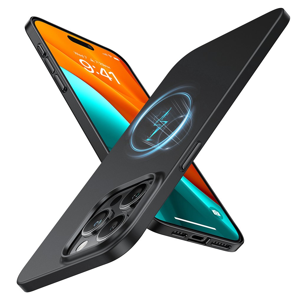 Toto puzdro je ztelesnením elegancie a funkčnosti. Jeho matne čierny povrch dodáva vášmu iPhone 15 Pro Max sofistikovaný vzhľad a zároveň zaisťuje príjemný úchop bez odtlačkov prstov. Vďaka ultra tenkému profilu a presným výrezom pre tlačidlá, reproduktory a nabíjací port si telefón zachováva svoj pôvodný tvar a plnú funkčnosť.