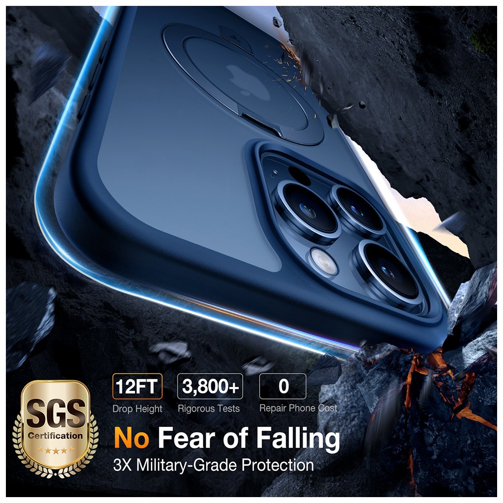 S krytom Torras Ostand získava váš iPhone 15 Pro Max ochranu na vojenskej úrovni (Military Grade). Vďaka patentovanej technológii X-SHOCK a robustnej konštrukcii je kryt schopný absorbovať nárazy a chrániť telefón aj pri pádoch z výšky až 3,6 metra (12FT), čo potvrdzuje aj SGS certifikácia.