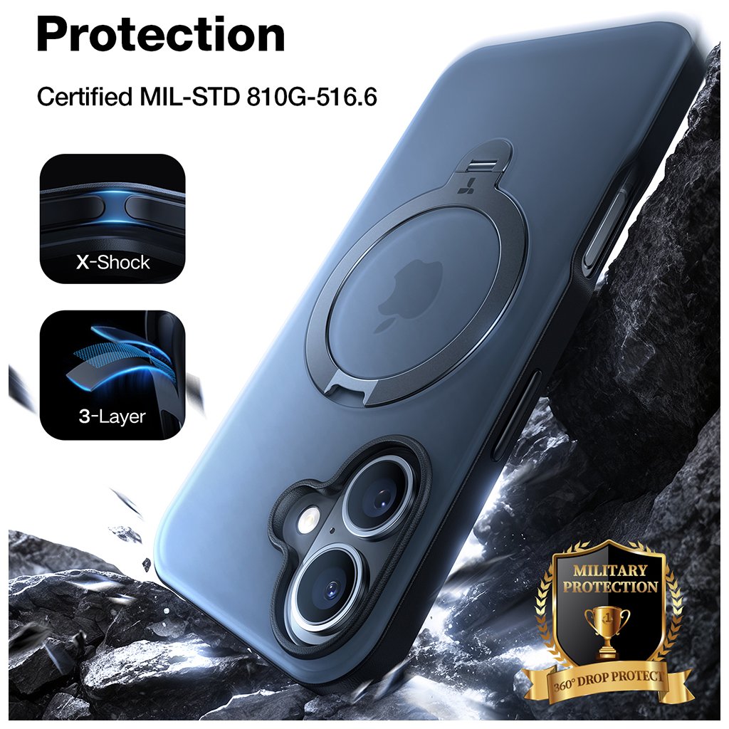 S krytom Torras Ostand Spin získava váš iPhone 16 Plus ochranu na vojenskej úrovni. Je vyrobené z kombinácie odolného polykarbonátu (PC) a flexibilného TPU z Nemecka, čo zaisťuje vynikajúcu absorpciu nárazov. Vďaka patentovanej technológii X-SHOCK a trojvrstvovej konštrukcii spĺňa kryt certifikáciu MIL-STD 810G-516.6, čo znamená, že váš telefón bude v bezpečí aj pri pádoch. Samozrejmosťou je plná kompatibilita s technológiou MagSafe, ktorá zaisťuje silné a presné magnetické pripojenie pre všetko MagSafe príslušenstvo.