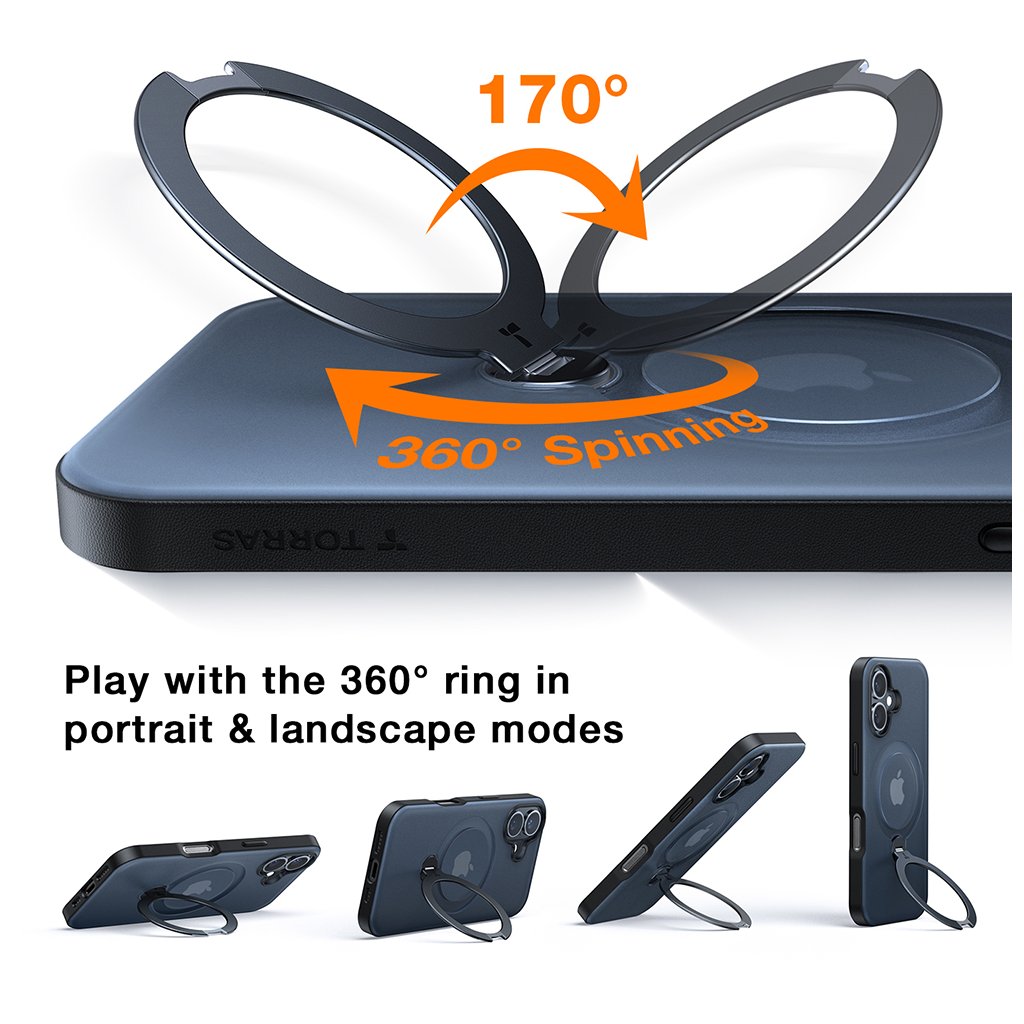 Torras Ostand Spin MagSafe Series – iPhone 16 Plus – čierna