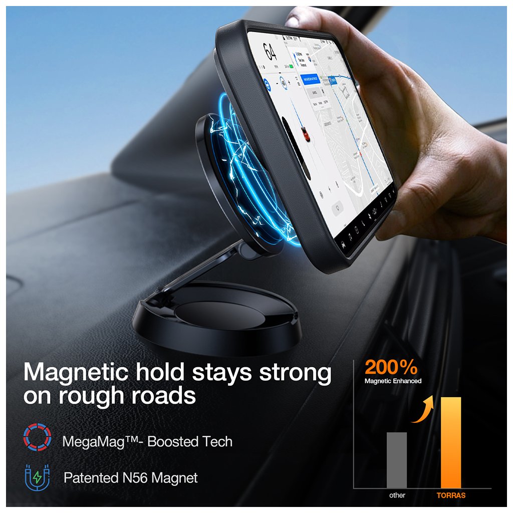 Puzdro Torras Pstand MagSafe sa pýši elegantným a funkčným dizajnom. Jeho zadná strana je vyrobená z priesvitného materiálu, ktorý decentne odhaľuje originálnu krásu vášho iPhonu, zatiaľ čo robustné čierne okraje zaisťujú maximálnu ochranu. Integrovaný MagSafe krúžok je dokonale zarovnaný a zaisťuje silné a stabilné magnetické pripojenie pre všetky MagSafe príslušenstvá, a to aj na nerovných cestách vďaka technológii MegaMag™- Boosted Tech a patentovaným N56 magnetom.