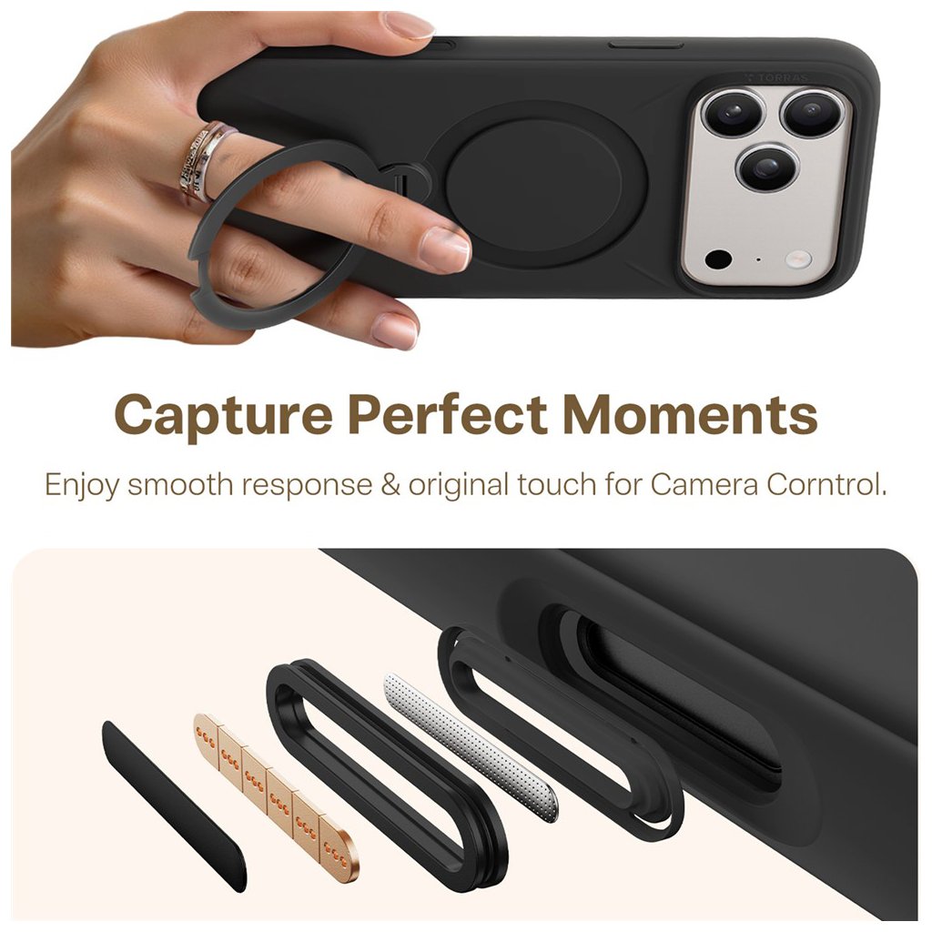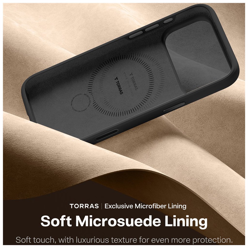 Kryt Torras QPRO Silicone Series sa pýši minimalistickým a sofistikovaným dizajnom v elegantnej čiernej farbe. Je vyrobený z prvotriedneho tekutého silikónu, ktorý zaisťuje mimoriadne jemný a príjemný pocit na dotyk. Vnútorná strana krytu je opatrená exkluzívnou mäkkou mikrosemišovou podšívkou, ktorá chráni zadnú stranu telefónu pred poškriabaním a dodáva mu luxusnú textúru. Precízne spracovanie zahŕňa zvýšené okraje okolo fotoaparátu a displeja, čo poskytuje dodatočnú ochranu proti poškriabaniu a nárazom. Vďaka Nano Easy-Clean Coating je povrch krytu odolný voči odtlačkom prstov a ľahko sa čistí.