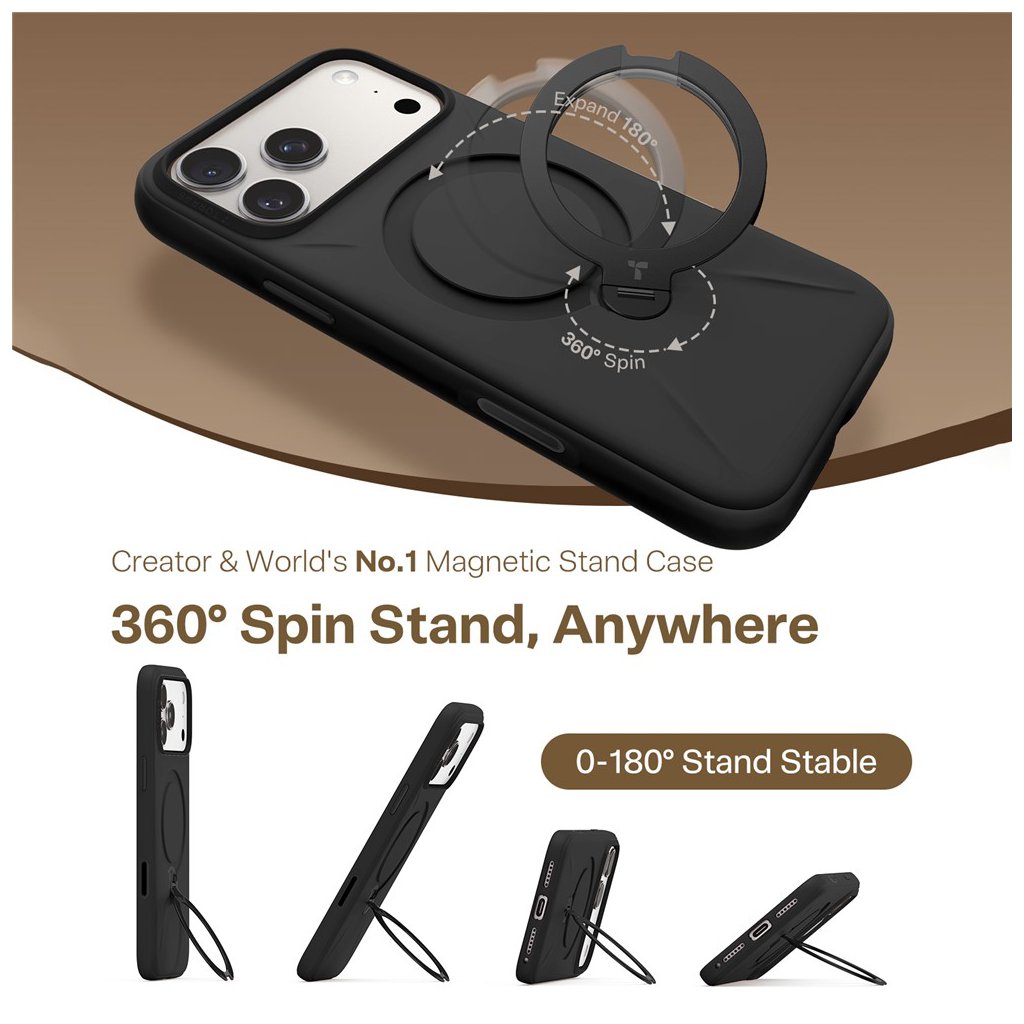 - Integrovaný 360° otočný stojanček: Revolučný prvok, ktorý umožňuje pohodlné sledovanie obsahu v akomkoľvek uhle. Stojanček je možné otočiť o 360° a vyklopiť až o 180°, čo zaisťuje stabilnú polohu telefónu na stole či inej ploche.