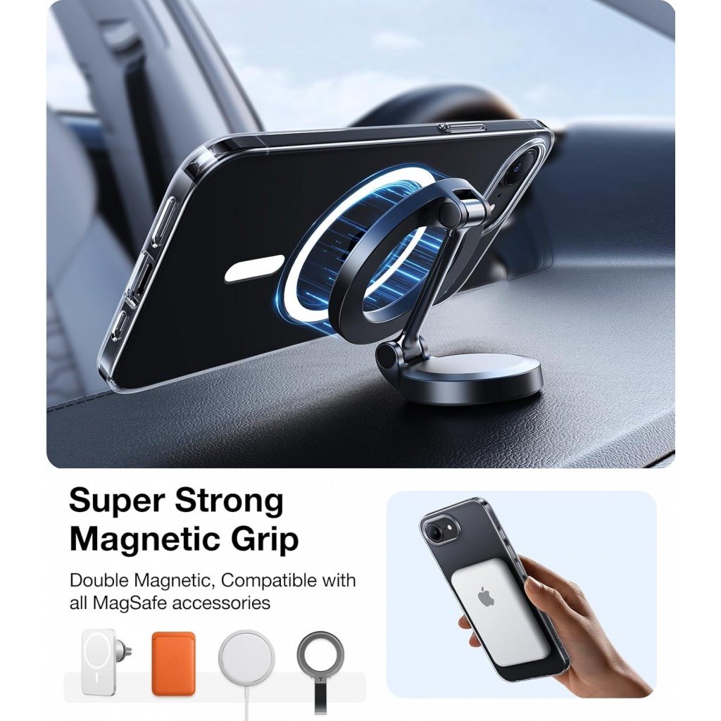 - Integrovaný MagSafe krúžok zaisťuje pevné a stabilné pripojenie všetkého MagSafe príslušenstva, od nabíjačiek po peňaženky.