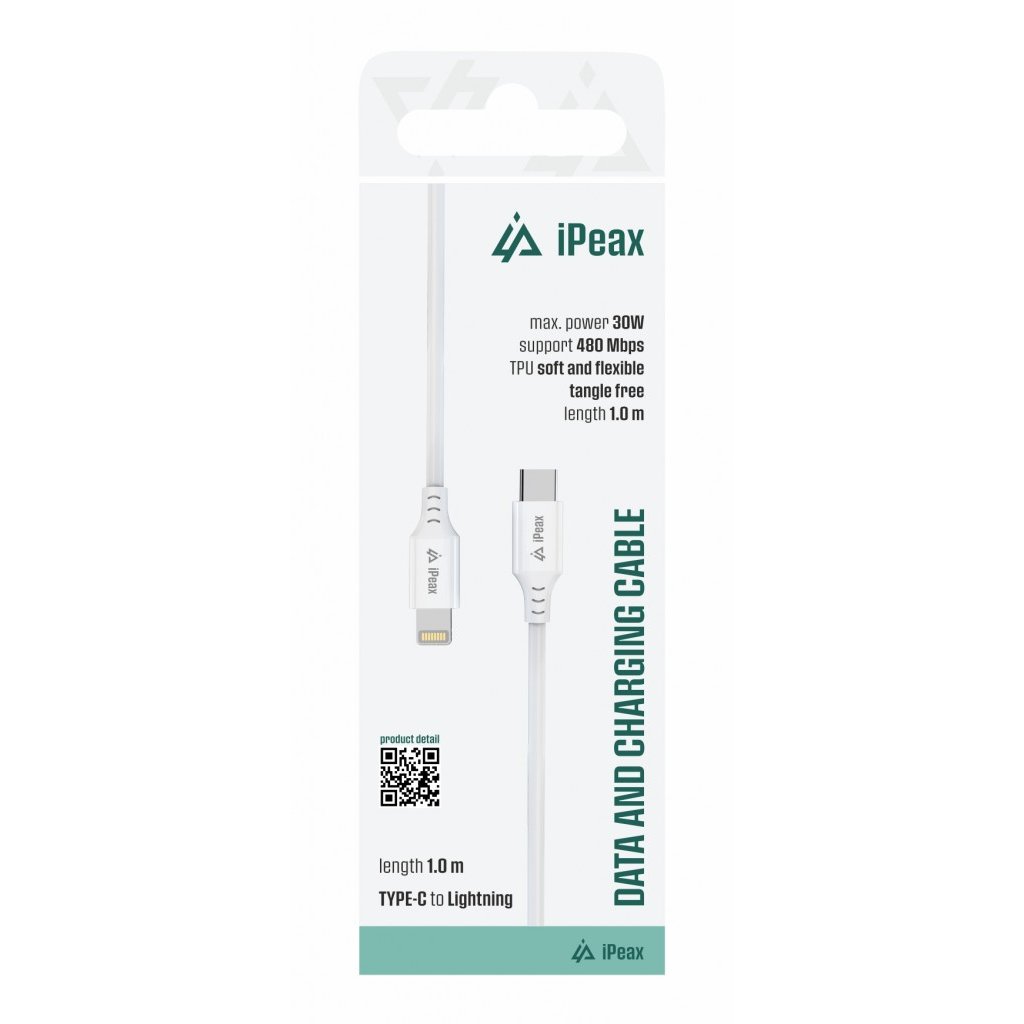 TPU kábel iPeax USB-C → Lightning, 1 m, USB 2.0, biely