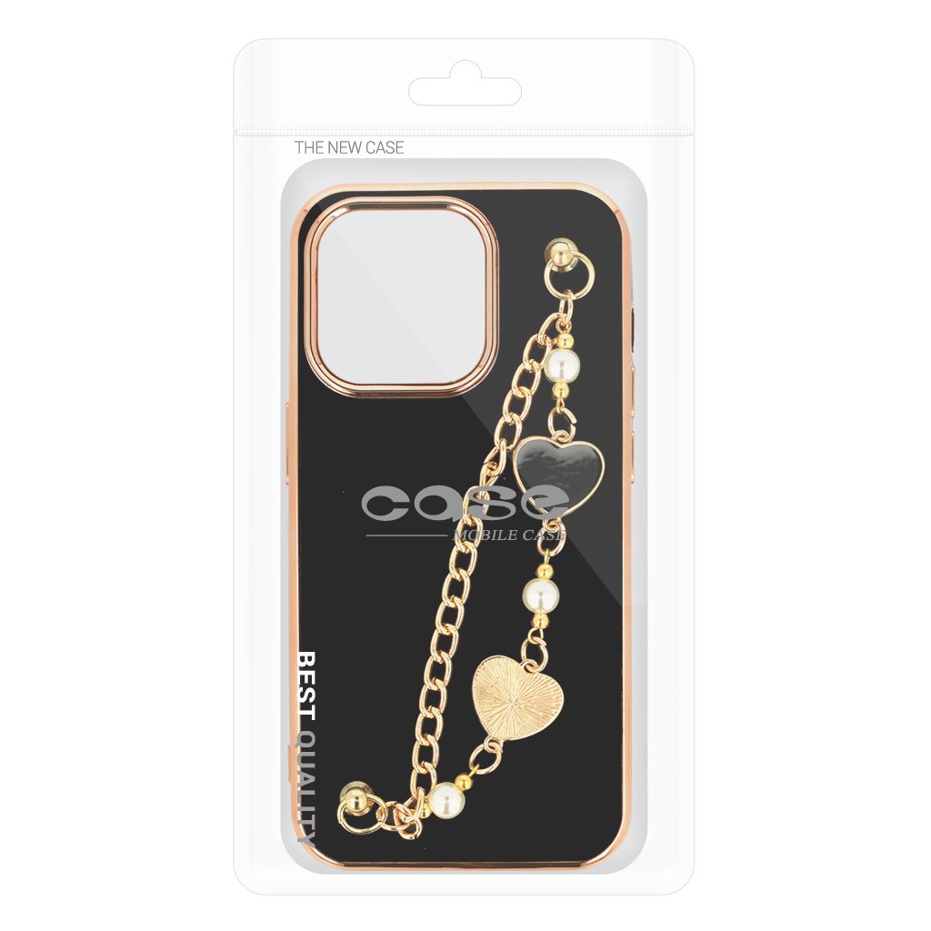 - Farba: Čierna s ozdobnou zlatou retiazkou