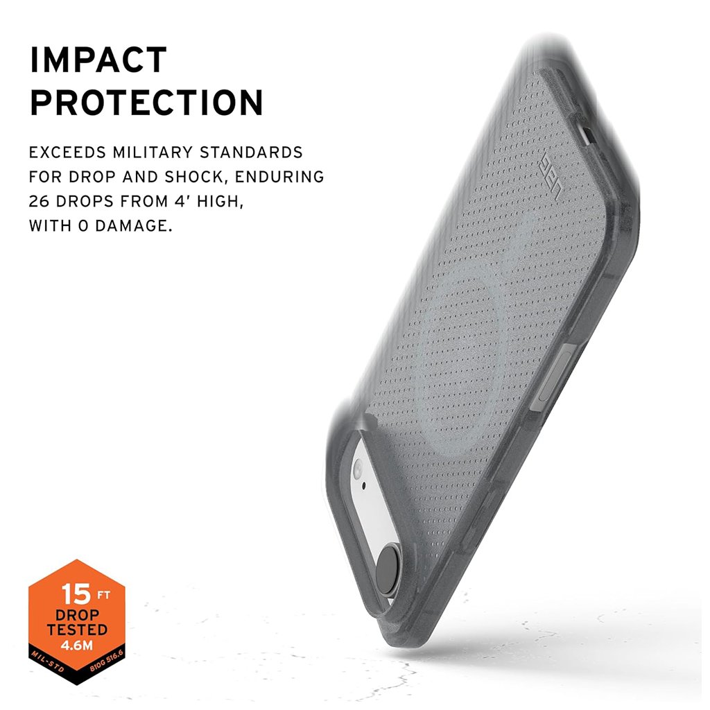 Konstrukcia krytu kombinuje tvrdú vonkajšiu škrupinu s mäkkým, nárazmi pohlcujúcim jadrom, čo je typické pre UAG a zaručuje vynikajúcu ochranu. Kryt bol testovaný na pád z výšky až 4,6 metra (15 stôp) a s prehľadom prekračuje vojenské štandardy odolnosti. Pre maximálnu ochranu displeja a fotoaparátu je kryt vybavený zvýšenými okrajmi okolo obrazovky a vyvýšeným rámčekom okolo objektívu fotoaparátu. Nadrozmerné, hmatové tlačidlá zaisťujú jednoduché ovládanie aj v rukaviciach, zatiaľ čo protisklzové úchopy po stranách minimalizujú riziko vyklznutia telefónu z ruky. I napriek svojej robustnej ochrane si kryt zachováva prekvapivo ľahký profil.