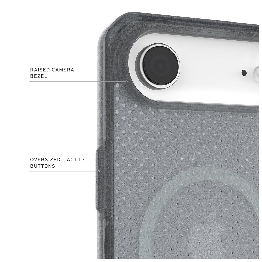 Kryt UAG Dot MagSafe pre iPhone 17 Air v popelavej farbe je ztelesnením moderného a funkčného dizajnu. Jeho zadná strana je opatrená charakteristickým jemným tečkovaným vzorom, ktorý dodáva krytu unikátnu textúru a zároveň umožňuje decentnú priesvitnosť. Integrovaný MagSafe modul zaisťuje bezproblémové a pevné pripojenie všetkého MagSafe príslušenstva, od bezdrôtových nabíjačiek po peňaženky.