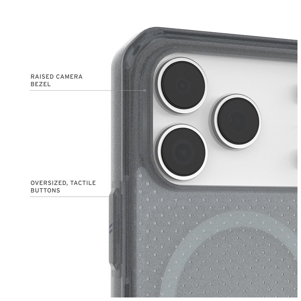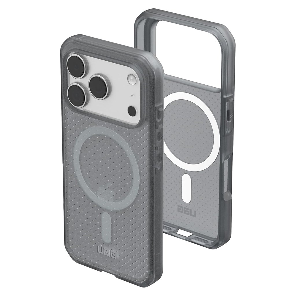 Puzdro UAG Dot MagSafe sa vyznačuje unikátnym, polopriesvitným dizajnom s jemným tečkovaným vzorom na zadnej strane, ktorý dodáva moderný a sofistikovaný vzhľad. Jeho popelavá farba podčiarkuje eleganciu a zároveň umožňuje vyniknúť originálnemu dizajnu vášho iPhone 17 Pro.