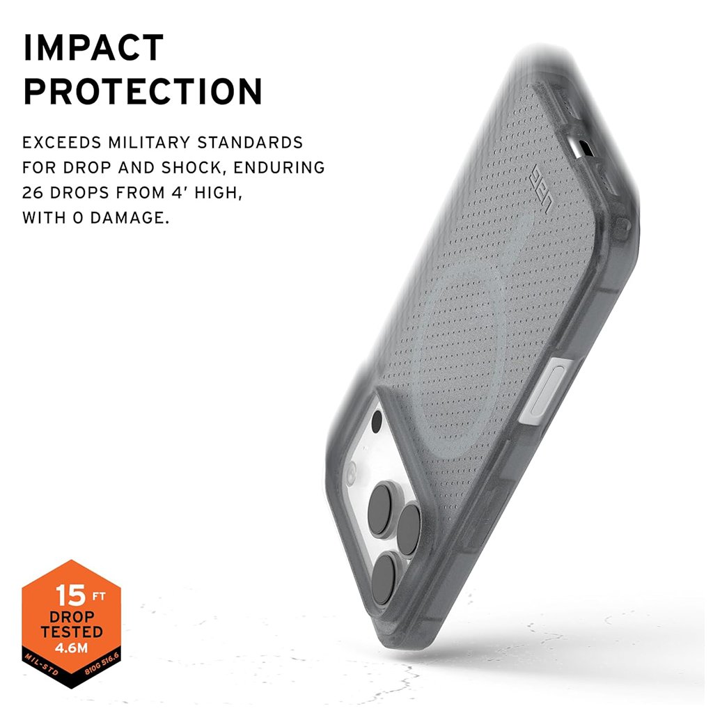 Značka UAG (Urban Armor Gear) je synonymom pre extrémnu odolnosť a spoľahlivosť. Puzdro UAG Dot MagSafe je navrhnuté tak, aby spĺňalo a často aj výrazne prekračovalo prísne vojenské normy odolnosti proti pádu (MIL-STD 810G). To znamená, že váš iPhone 17 Pro bude chránený aj pri pádoch z výšky až 4,6 metra (15 stôp), čo bolo testované 26-krát bez poškodenia.