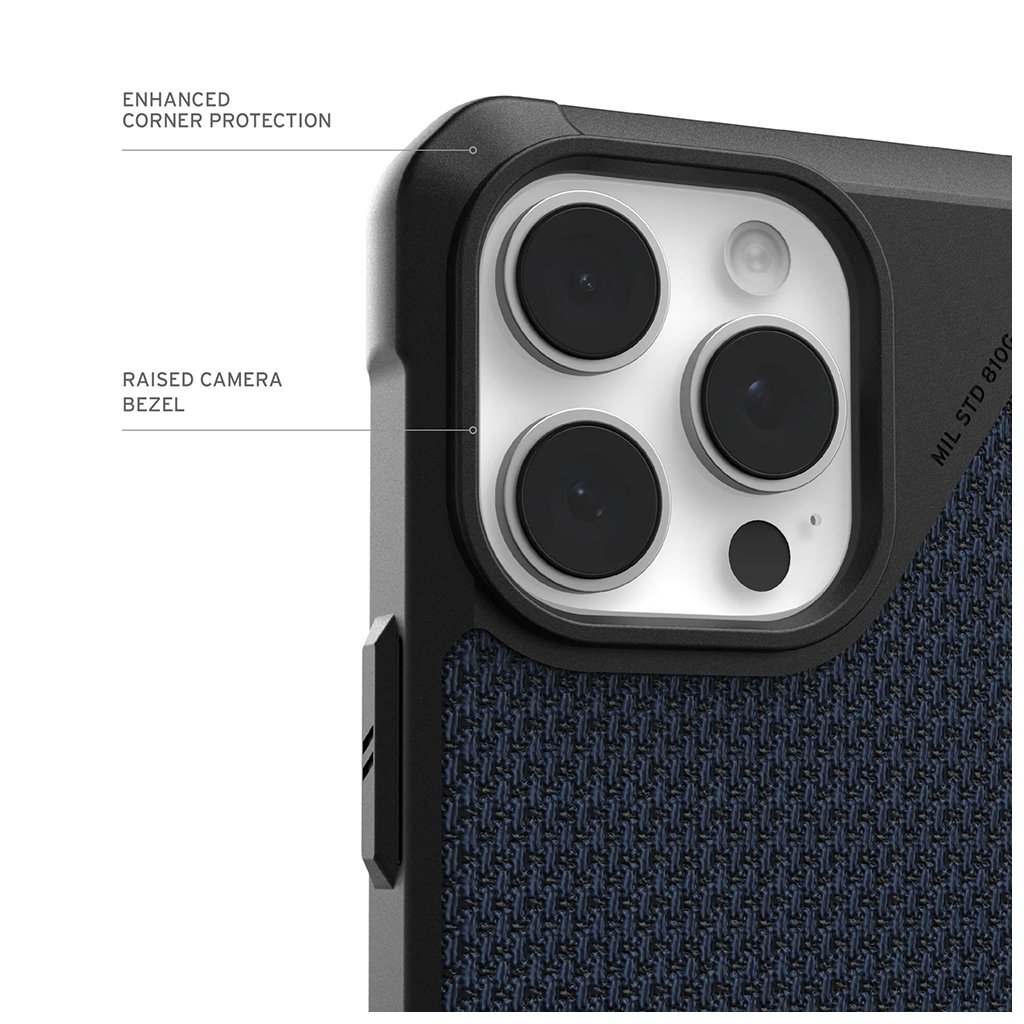 - Zadná strana krytu je opatrená prémiovou vložkou z DuPont™ Kevlar® vlákien v elegantnej tmavomodrej farbe, ktorá dodáva nielen sofistikovaný vzhľad, ale aj zvýšenú odolnosť.