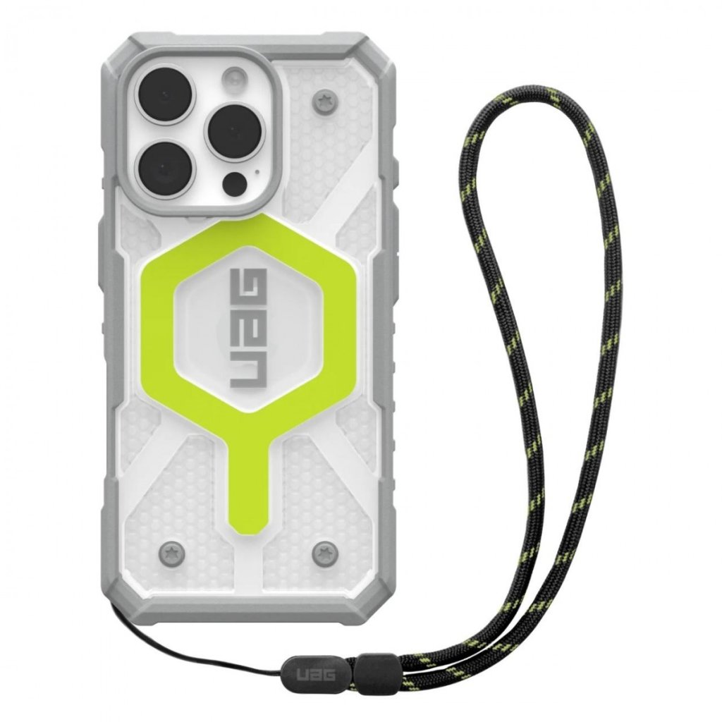 UAG Pathfinder Clear Magsafe iPhone 16 Pro s aktívnym neónovým pútkom