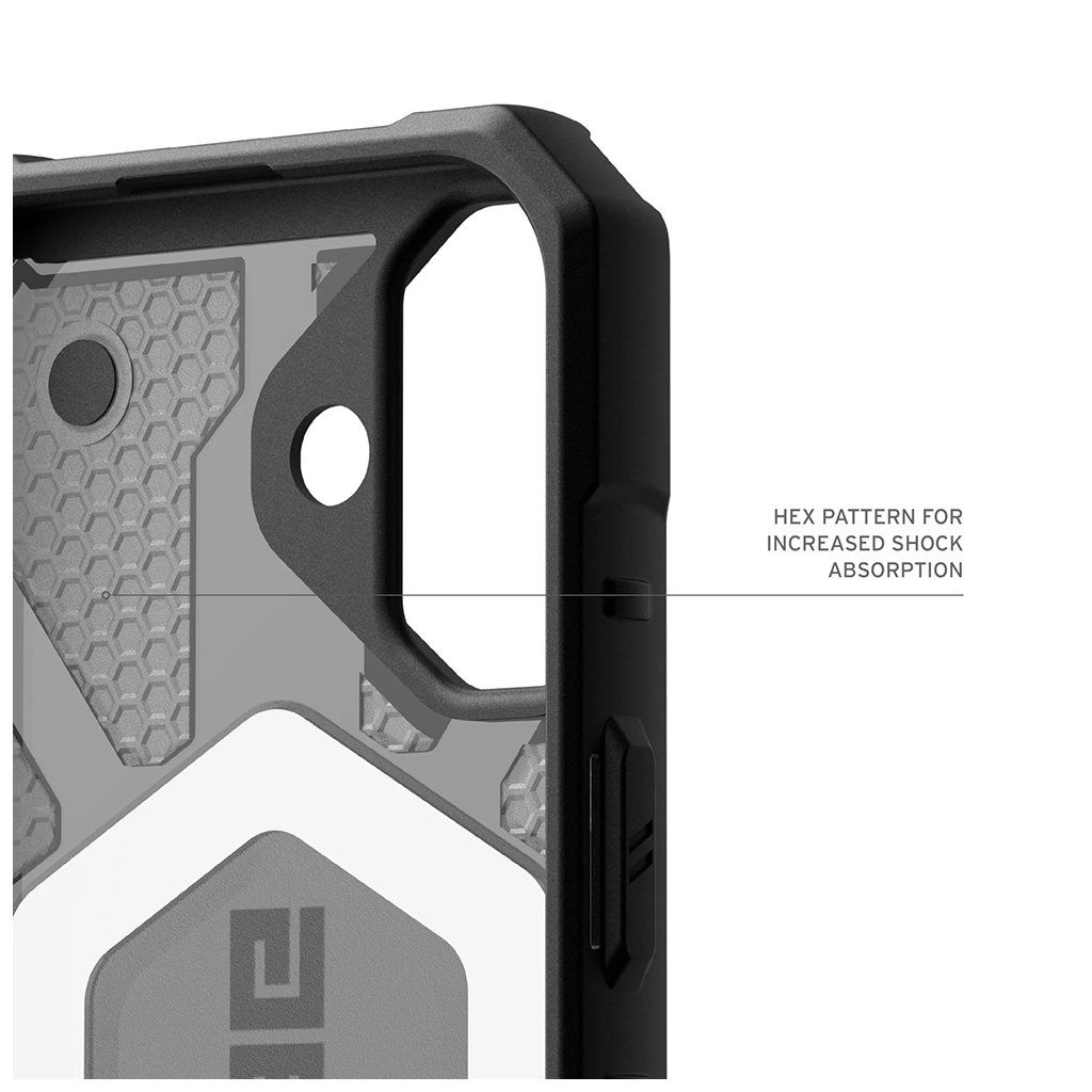 Dizajn v farebnej kombinácii popelavá černá (Ash / Black) ponúka poloprůhlednú zadnú stranu s jemným voštinovým vzorom, ktorá necháva vyniknúť originálny dizajn vášho iPhonu 17, zatiaľ čo pevné čierne okraje a detaily dodávajú puzdru nezameniteľný, odolný vzhľad. Integrovaný MagSafe krúžok v čiernej farbe zaisťuje bezproblémové a pevné pripojenie všetkého MagSafe príslušenstva. Každý detail, od nadrozmerných hmatových tlačidiel po protiskluzové úchopy, je navrhnutý pre maximálnu funkčnosť a istotu v každej situácii.