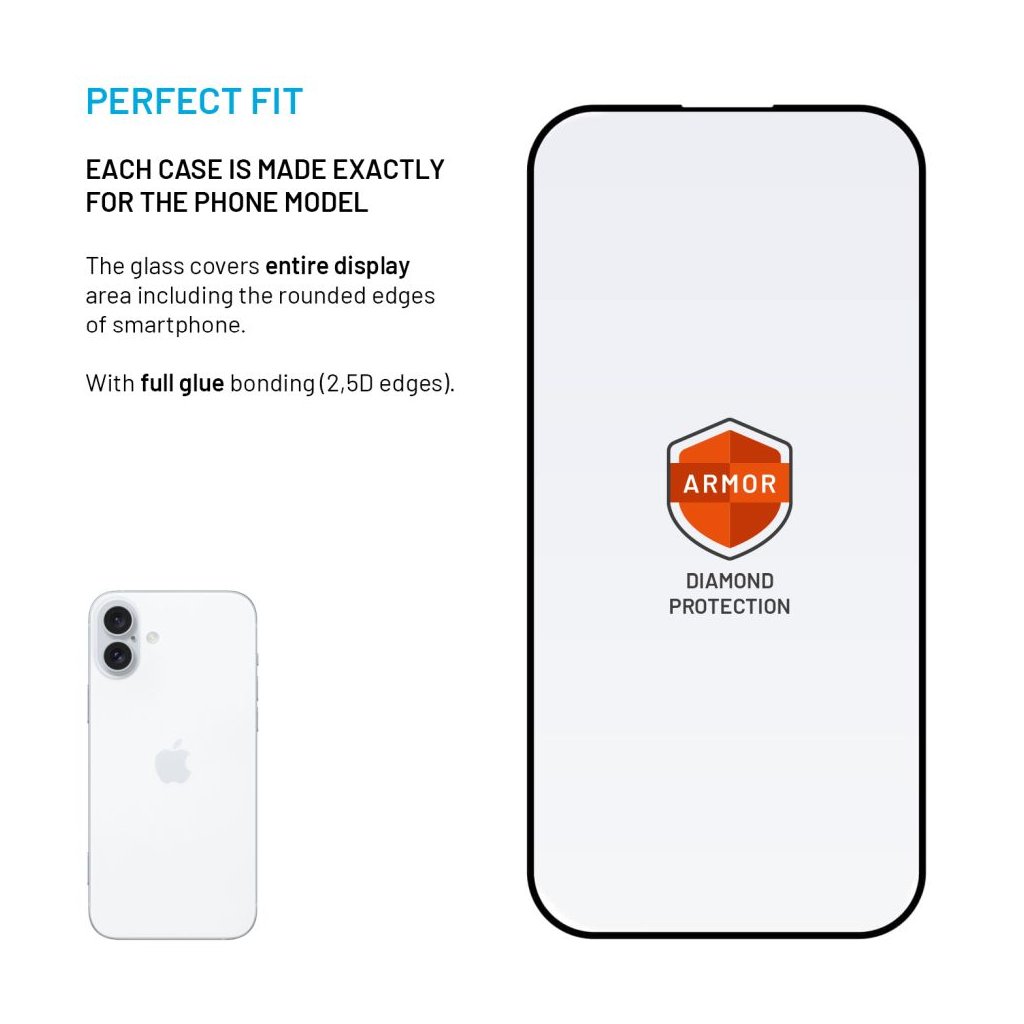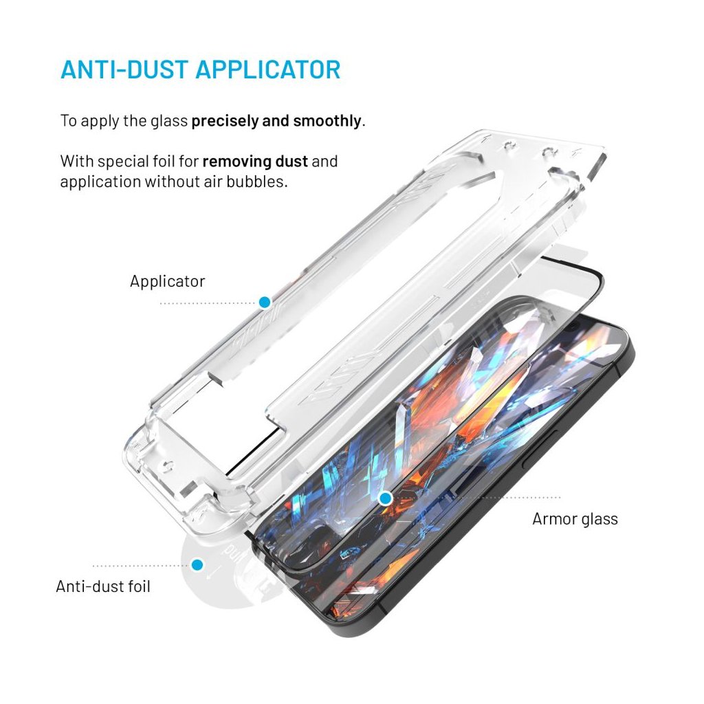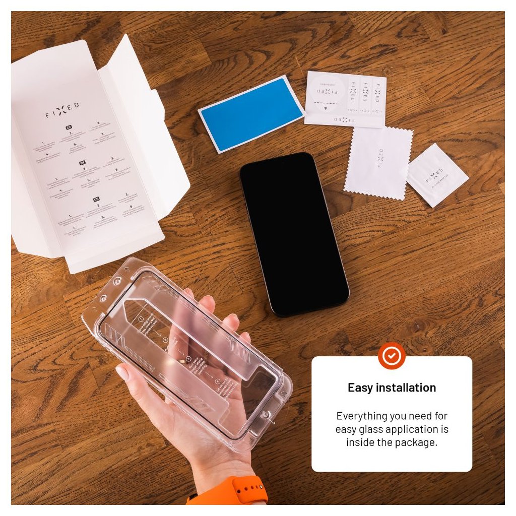 Ultraodolné tvrdené sklo FIXED Armor s aplikátorom proti prachu a vrstvou AR pre Apple iPhone 15 Plus-16 Plus, čierne