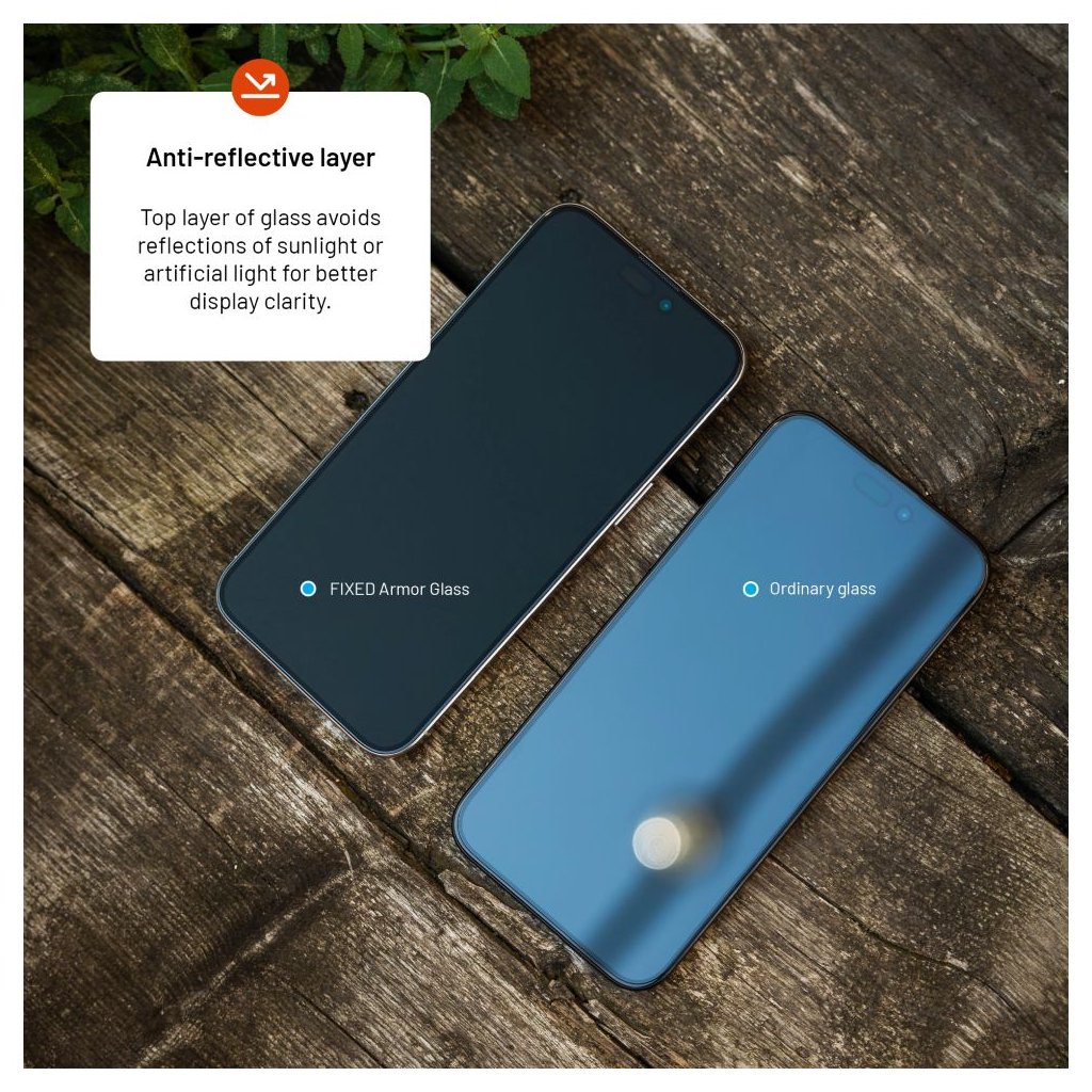 Ultraodolné tvrdené sklo FIXED Armor s aplikátorom proti prachu a vrstvou AR pre Apple iPhone 15 Plus–16 Plus, čierneUltraodolné tvrdené sklo FIXED Armor pre Apple iPhone 15 Plus–16 Plus