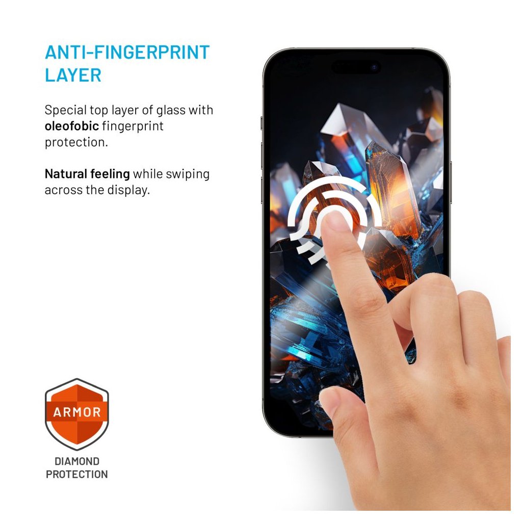 - Oleofóbna vrstva – zabraňuje ulpievaniu odtlačkov prstov a zaisťuje ľahký pohyb po displeji – udržujte svoj displej čistý a bez šmúh.