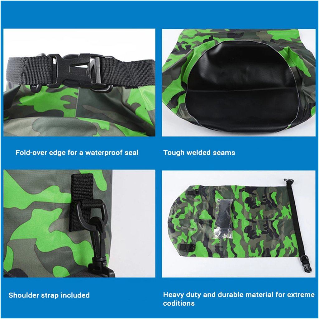 Predstavujeme vám 20-litrovú nepremokavú tašku s maskovacím vzorom, ktorá je navrhnutá pre všetky vaše outdoorové aktivity. Tento produkt je ideálny pre turistiku, kempovanie, rybárčenie alebo prechádzky v prírode, pričom zaručuje, že vaše vybavenie zostane suché a bezpečné.