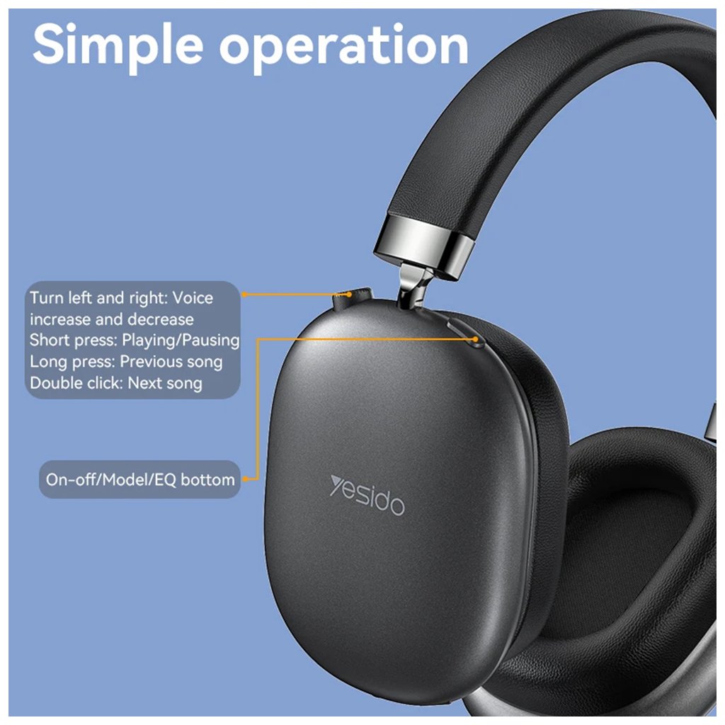 Slúchadlá Yesido EP05 sa pýšia moderným a minimalistickým dizajnom v matne čiernej farbe, ktorý dopĺňajú decentné kovové akcenty na nastaviteľnom hlavovom moste. Náušníky sú navrhnuté tak, aby poskytovali stabilné a pohodlné nosenie aj po dlhých hodinách počúvania. Ich ergonomický tvar a nízka hmotnosť 200 gramov zaisťujú, že si ich sotva všimnete.