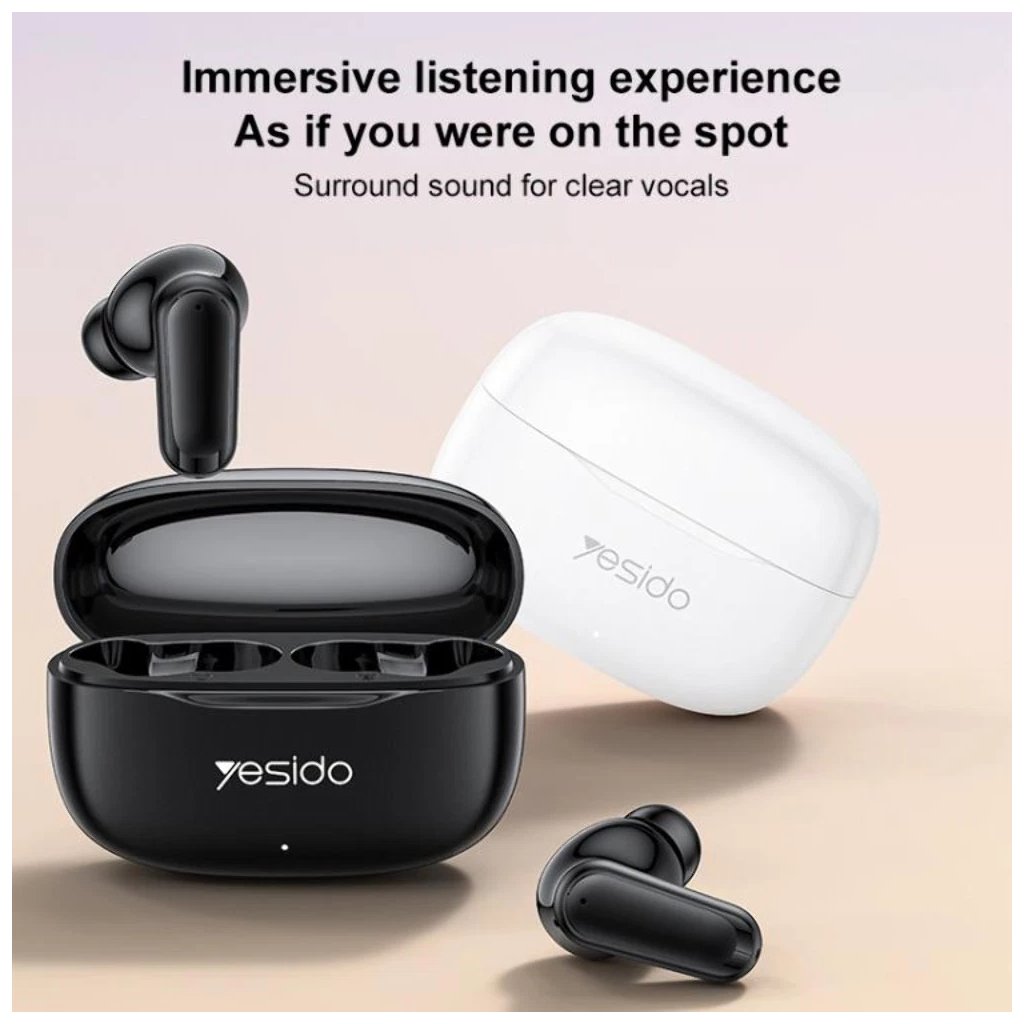 Slúchadlá Yesido TWS38 sa pýšia minimalistickým a sofistikovaným dizajnom v čisto bielom prevedení, ktoré skvele doplní akýkoľvek outfit. Ich ergonomický tvar zaisťuje pohodlné a stabilné usadenie v uchu, takže si môžete užívať hudbu bez obáv aj počas pohybu. Kompaktné nabíjacie puzdro s decentným logom Yesido je nielen praktické na prenášanie, ale aj elegantný doplnok, ktorý sa ľahko zmestí do vrecka či kabelky.