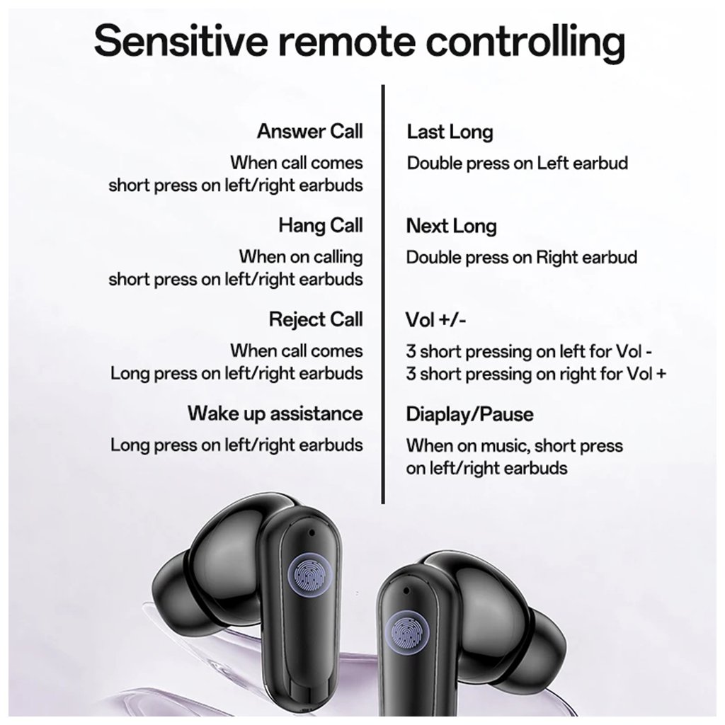 - Ovládanie: Citlivé dotykové ovládanie umožňuje jednoducho prijímať/ukončovať hovory, preskakovať skladby, upravovať hlasitosť a aktivovať hlasového asistenta.