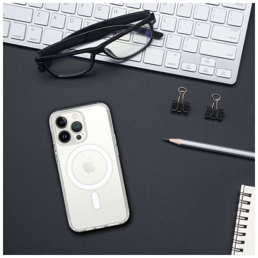Transparentný dizajn krytu umožňuje vyniknúť prirodzenej kráse vášho iPhonu, zatiaľ čo jemné akrylové detaily dodávajú moderný a sofistikovaný vzhľad. Na zadnej strane sa nachádza elegantný magnetický kruh, ktorý nielenže zabezpečuje kompatibilitu s MagSafe príslušenstvom, ale tiež pridáva na vizuálnej príťažlivosti.