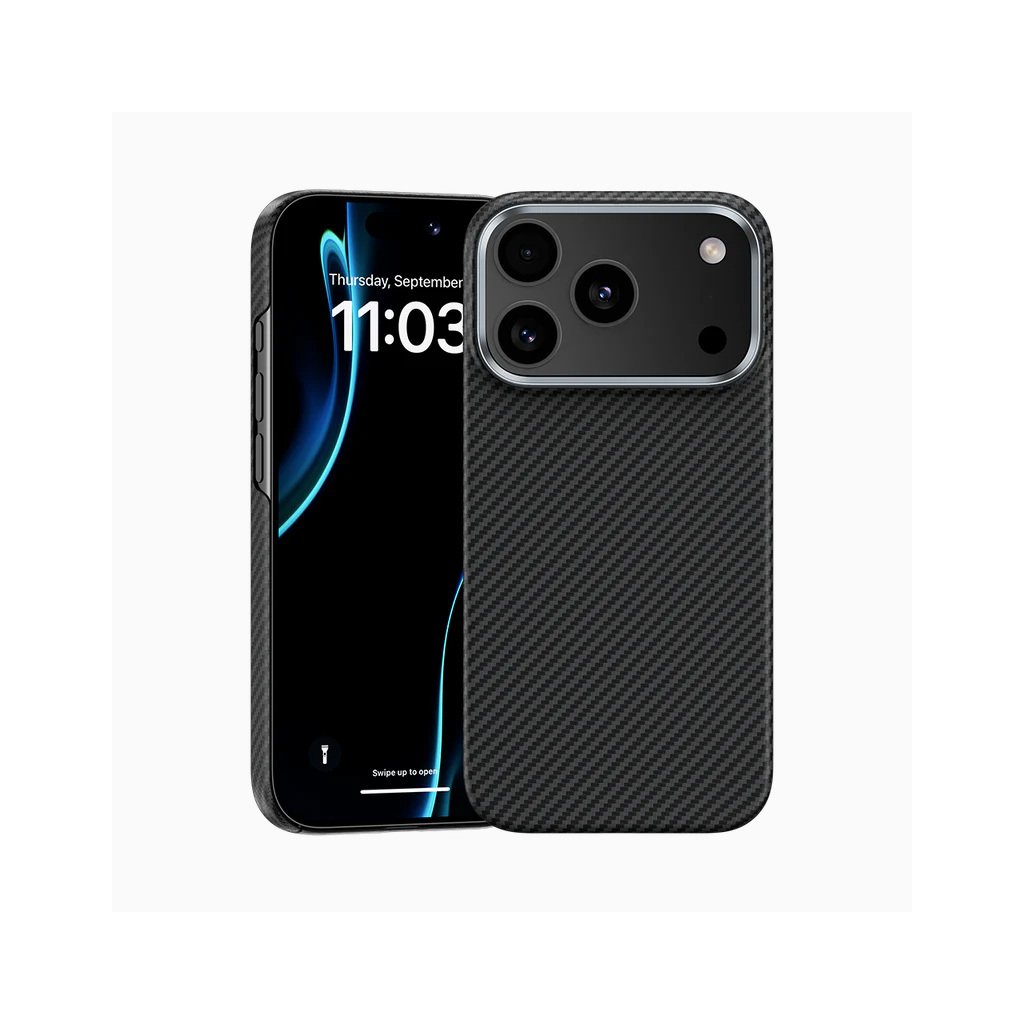 Kevlar® 600D použitý v tomto kryte je známy svojou vysokou pevnosťou a nízkou hmotnosťou. Povrch s jemnou textúrou zaisťuje pevný a bezpečný úchop bez zbytočného klzania, zatiaľ čo čierna farba dodáva elegantný a nadčasový vzhľad. Kovový rám posilňuje konštrukciu a zabezpečuje lepšiu ochranu hrán telefónu.