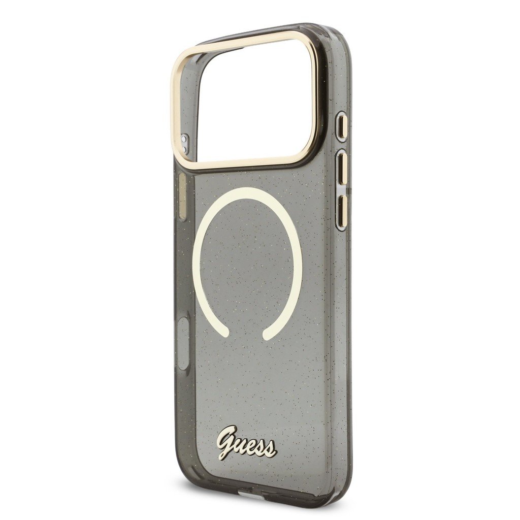 Zadný kryt Guess IML Glitter Script Strap MagSafe pre iPhone 17 Pro Max Black