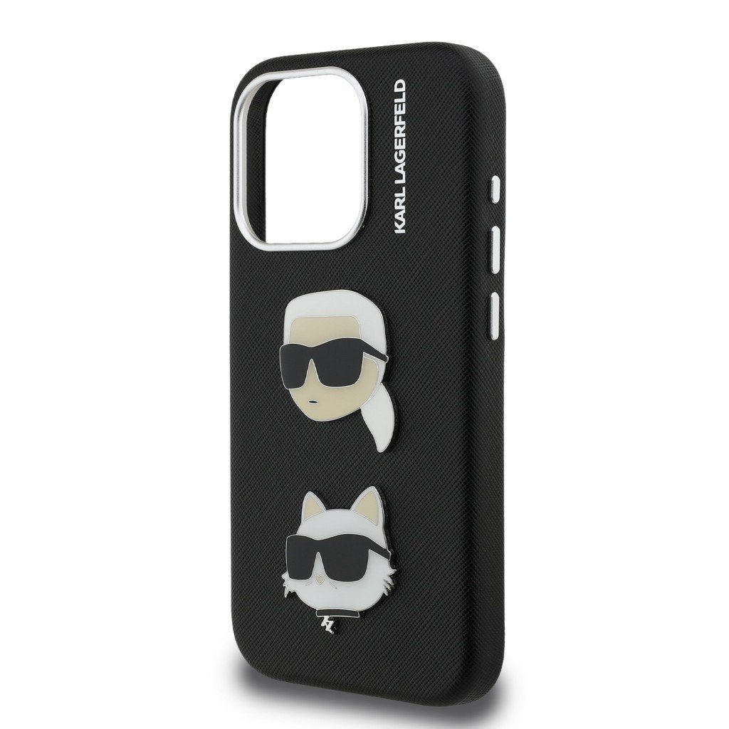 Zadný kryt Karl Lagerfeld Grained PU K&CH Heads pre iPhone 15 Pro Max Čierny